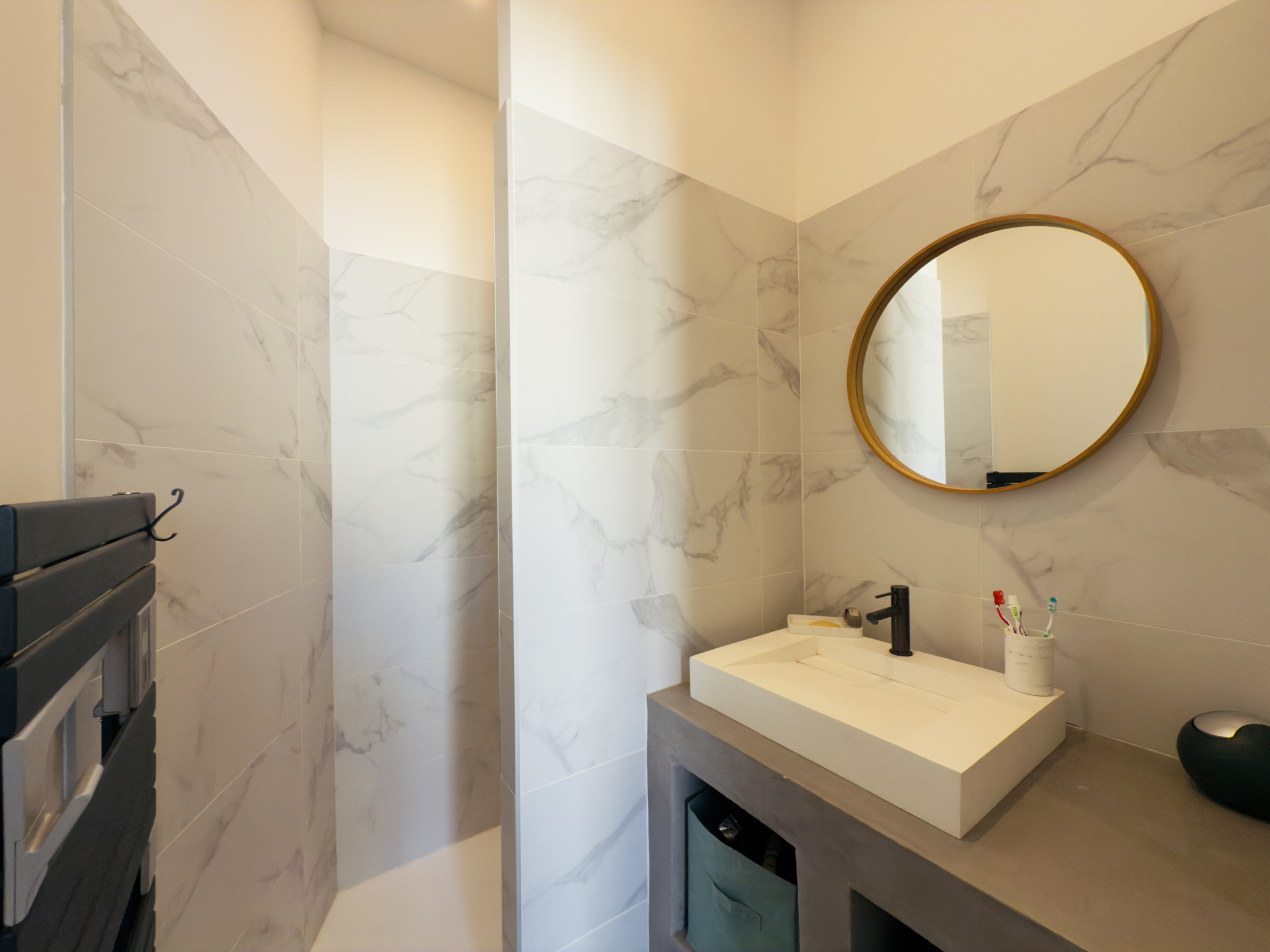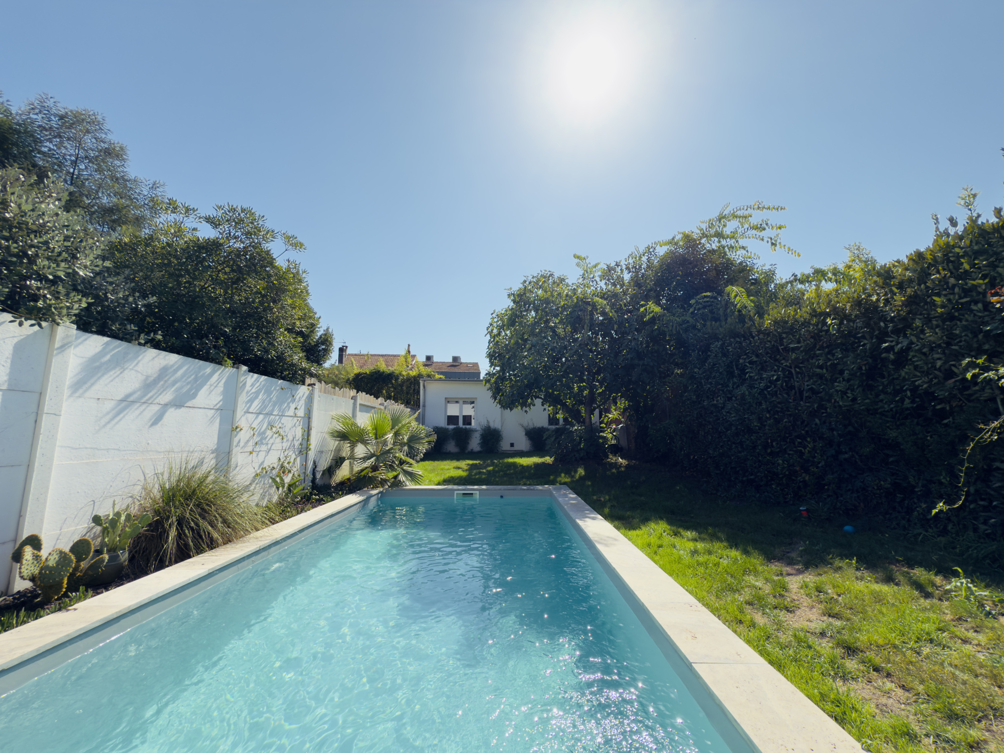 Cette maison baignée de lumière offre un cadre de vie exceptionnel. En rez-de-chaussée, vous trouverez une chambre avec sa salle d'eau privative, un dégagement idéal pour accueillir plusieurs vélos, ainsi qu'un vaste séjour-cuisine de 55m2 avec une grande baie vitrée ouvrant sur le jardin de 150m2 accuillant une superbe piscine. En fond de parcelle, une dépendance de 20m2 offre un espace supplémentaire à personnaliser selon vos envies.
