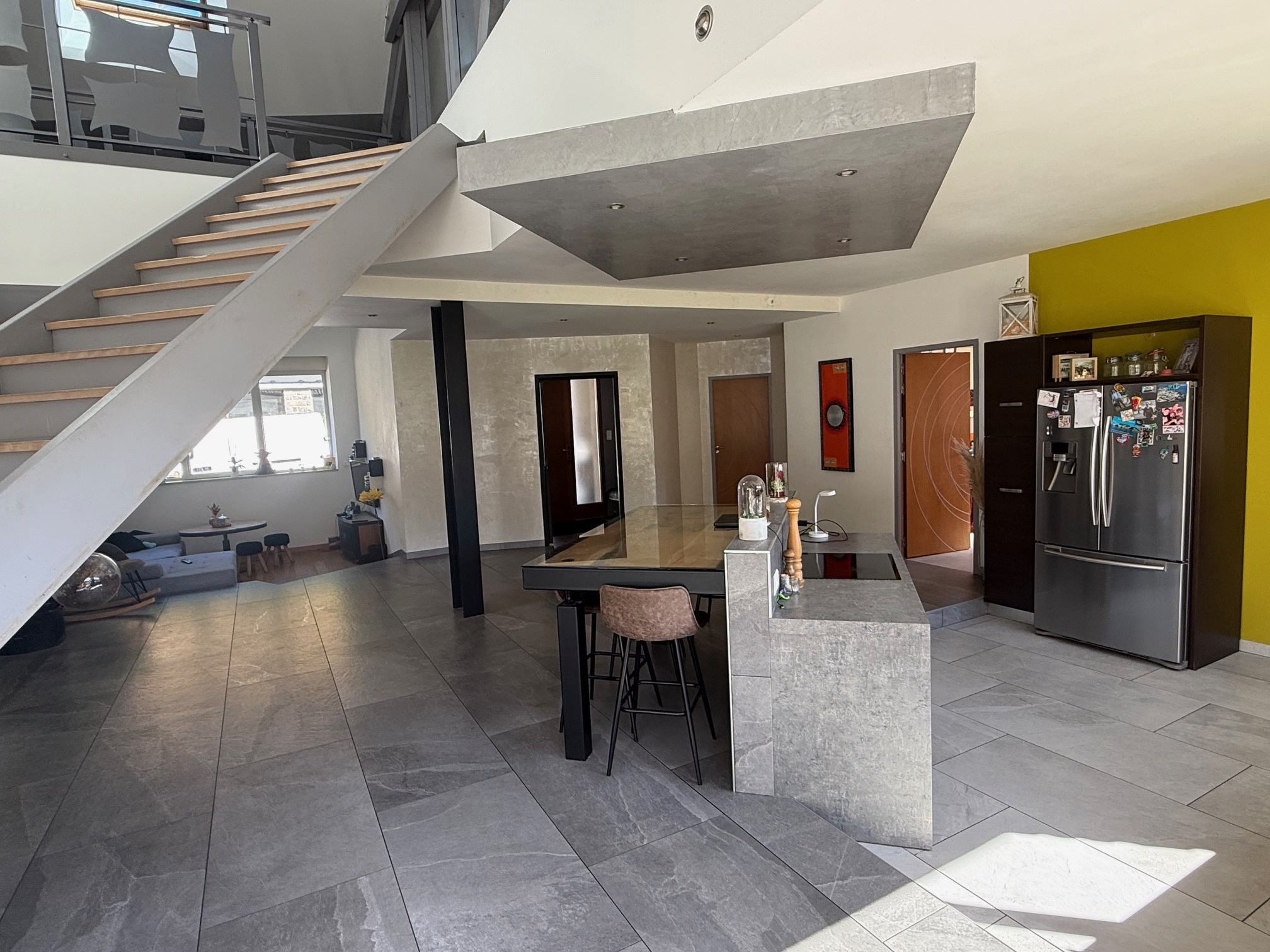 Entrée avec placard, vaste cuisine équipée ouverte sur salon-séjour (environ 110 m2 l'ensemble) ; cellier attenant à la cuisine. Chambre / bureau. Salle de bains avec douche et baignoire. Wc séparé. Buanderie.