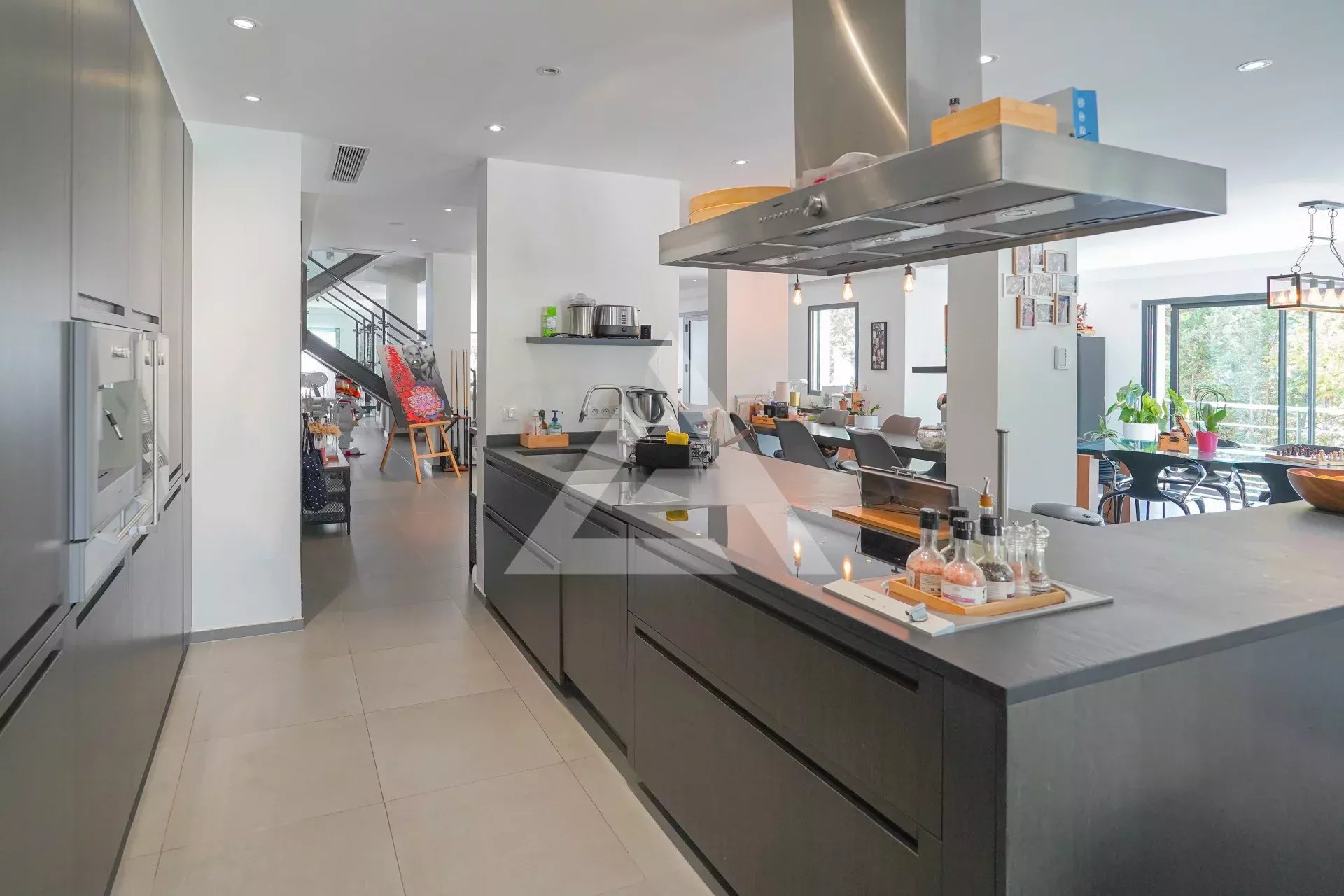 Le rez-de-chaussée accueille un vaste espace de vie composé d’un salon et salle à manger d'une surface de 161 m² et d’une cuisine moderne, complété par une buanderie, des rangements et un WC indépendant.