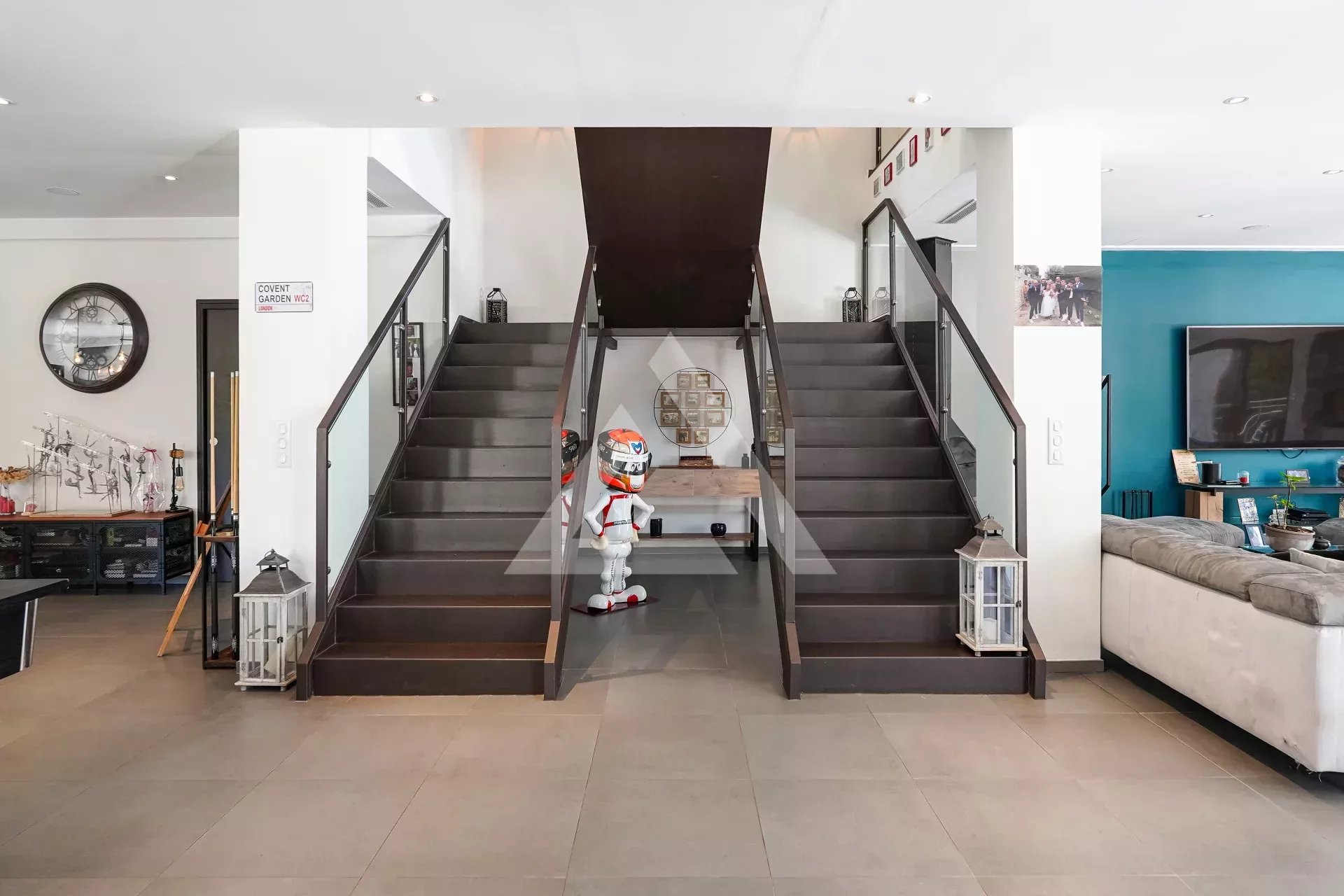 Saint Martin de Peille, découvrez cette magnifique villa contemporaine de 404 m² habitables édifiée sur un terrain paysager de 2 929 m², offrant calme et une vue dégagée sur les montagnes en exposition plein sud.