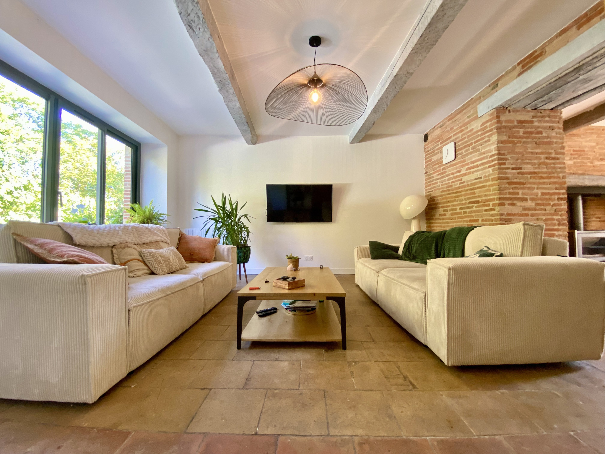 Dans un cadre naturel exceptionnel de 7700 m2 en bordure directe du Tarn, découvrez cette maison chaleureuse et entièrement rénovée en 2023 (isolation, électricité, plomberie, menuiserie...). Un bien rare alliant charme, volumes généreux et prestations modernes.