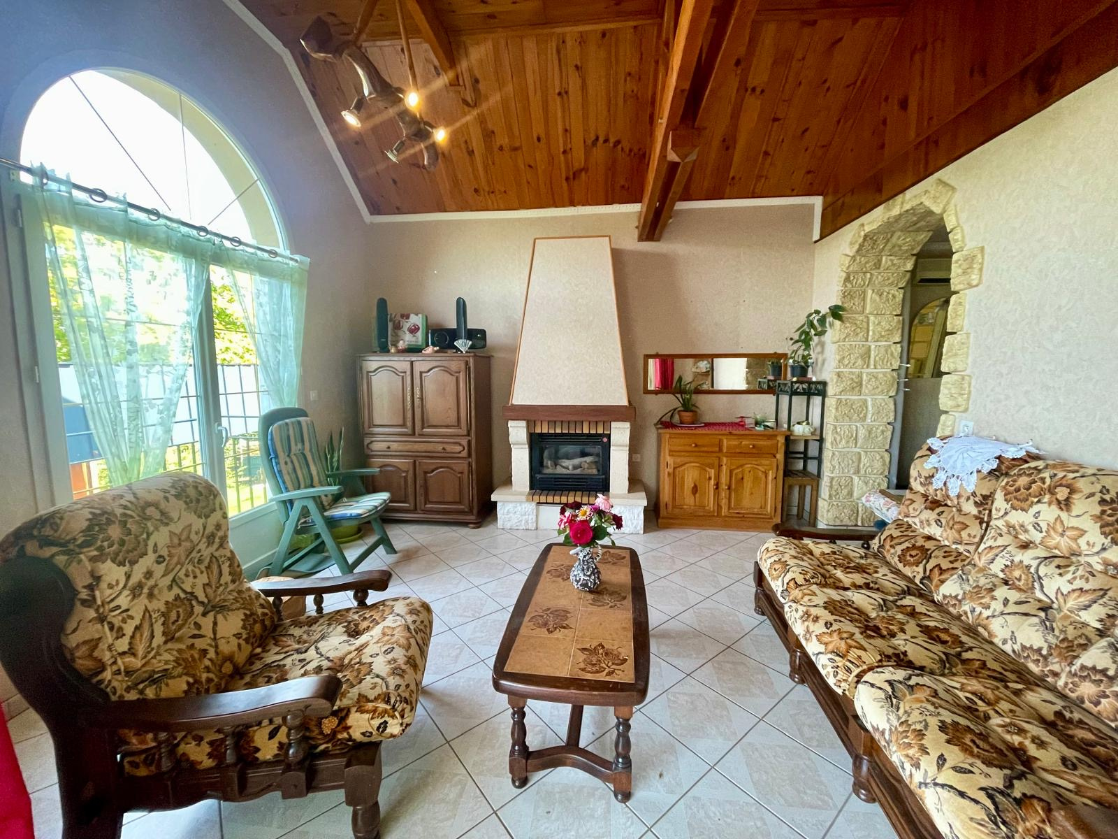 Une maison de plain pied avec de beaux volumes, composée d'une entrée, une cuisine aménagée et équipée, un cellier, un double séjour ouvert sur une véranda. Du côté nuit, nous disposons de trois chambres et d'une salle de bains (douche et baignoire), WC séparé.