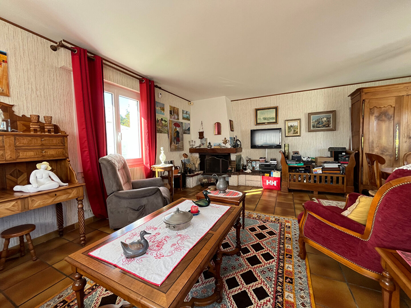 Elle dispose d'une belle entrée desservant une cuisine indépendante, un double salon-séjour avec cheminée exposée SUD, une suite parentale avec douche et baignoire, un wc et une véranda donnant sur le jardin.