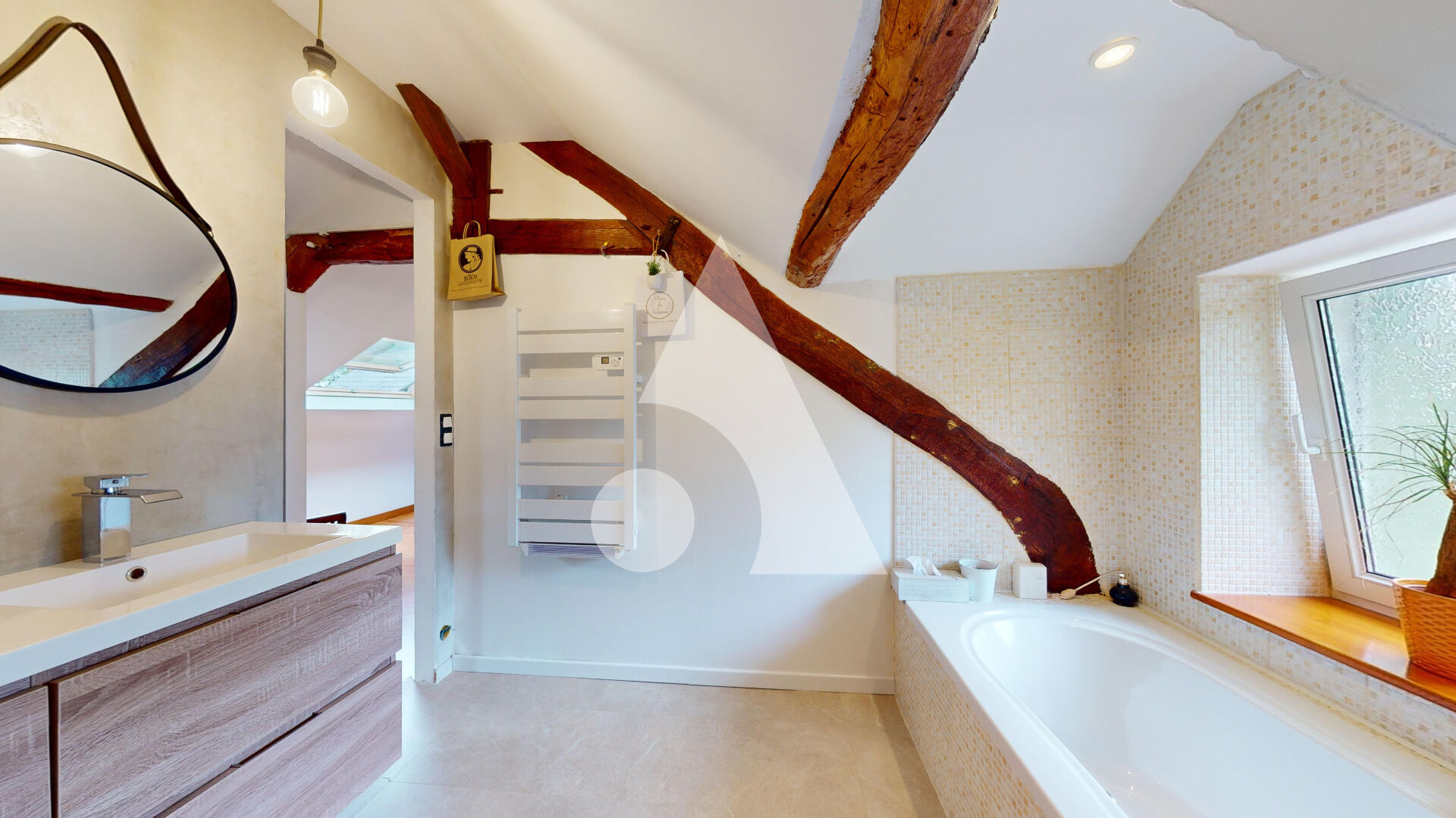 A l'étage, l'espace nuit se compose de trois chambres dont une suite parentale avec salle de bain et dressing et une salle d'eau supplémentaire.