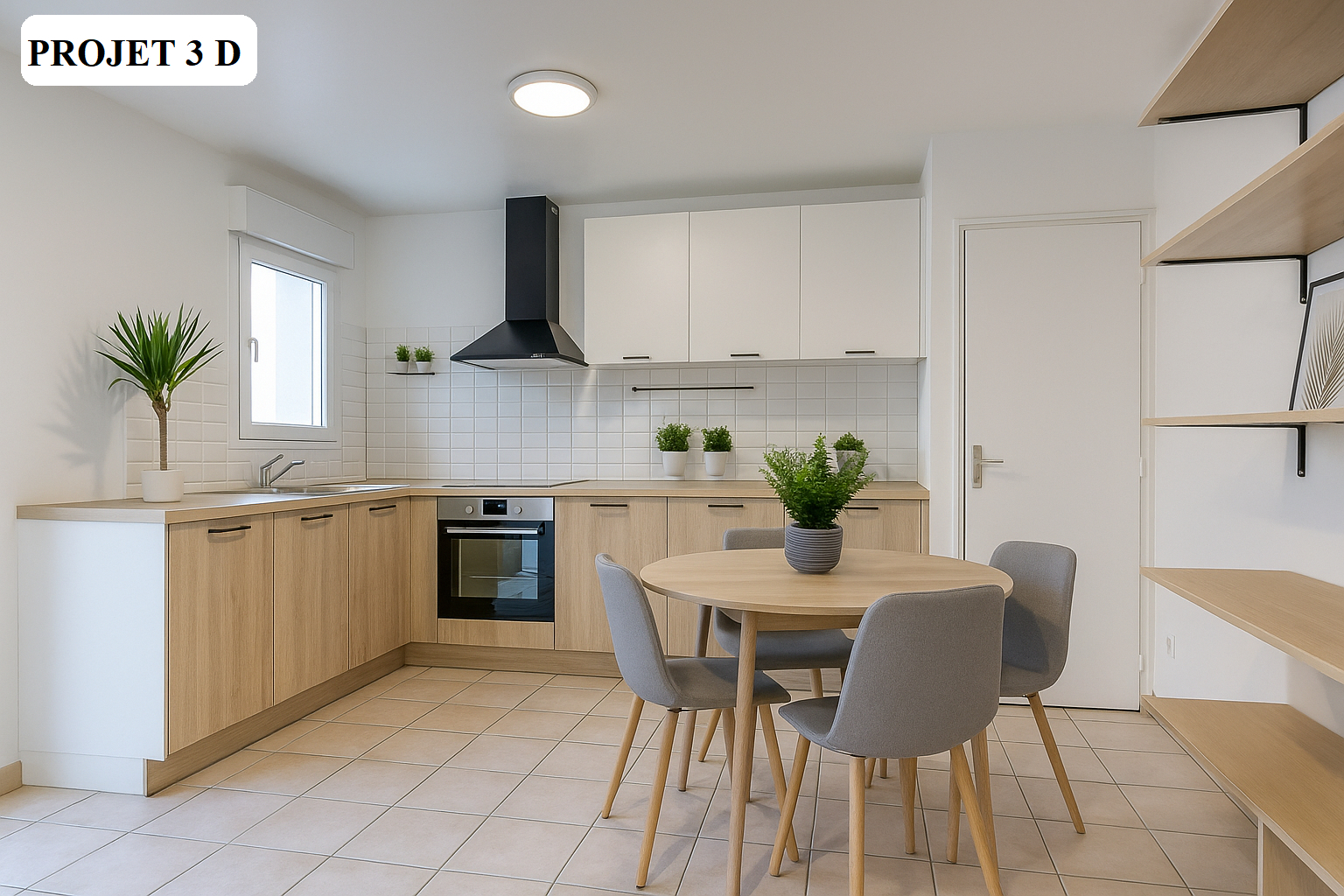 Au rez-de-chaussée, la grande pièce de vie de plus de 40 m² accueille un salon-séjour en lumière traversante donnant accès aux terrasses et une grande cuisine ouverte avec espace rangement, un dégagement dessert un WC et le garage avec espace buanderie et espace de stockage en plateforme.
