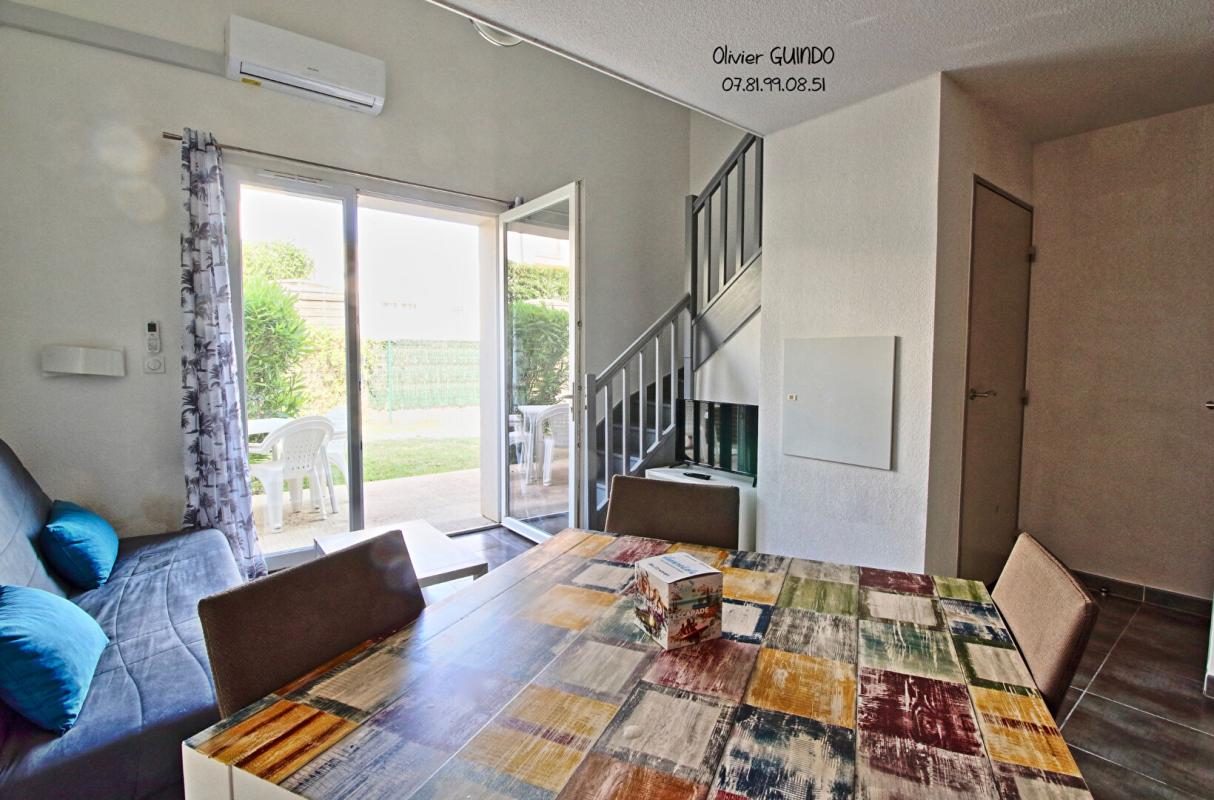 Maison R+1 climatisée 2 pièces de 35 m2 avec terrasse et parking dans une résidence de tourisme.