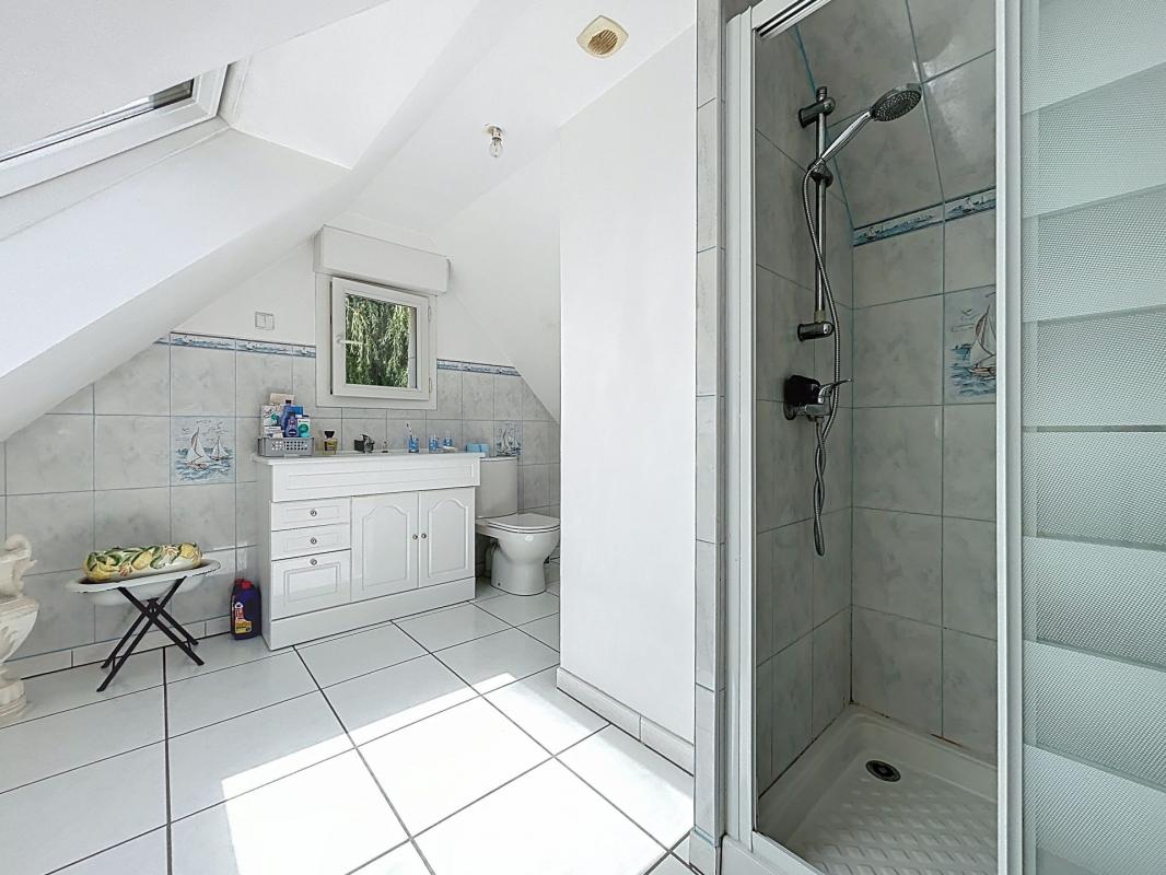 À l'étage : un palier qui dessert deux chambres supplémentaires et une deuxième salle de bains.