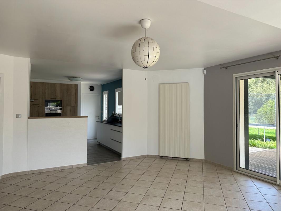 Une pièce de vie spacieuse et lumineuse ouverte sur la terrasse bois et le jardin,