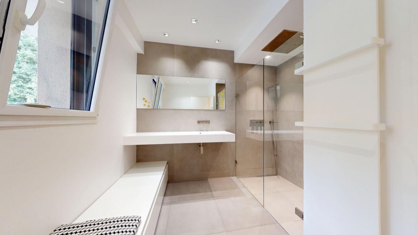 À l'extérieur, profitez d'une superbe terrasse en bois exotique (Ipé) avec piscine chauffée (9x4 m) et barbecue en dur - un véritable espace de vie en plein air, idéal pour les beaux jours.