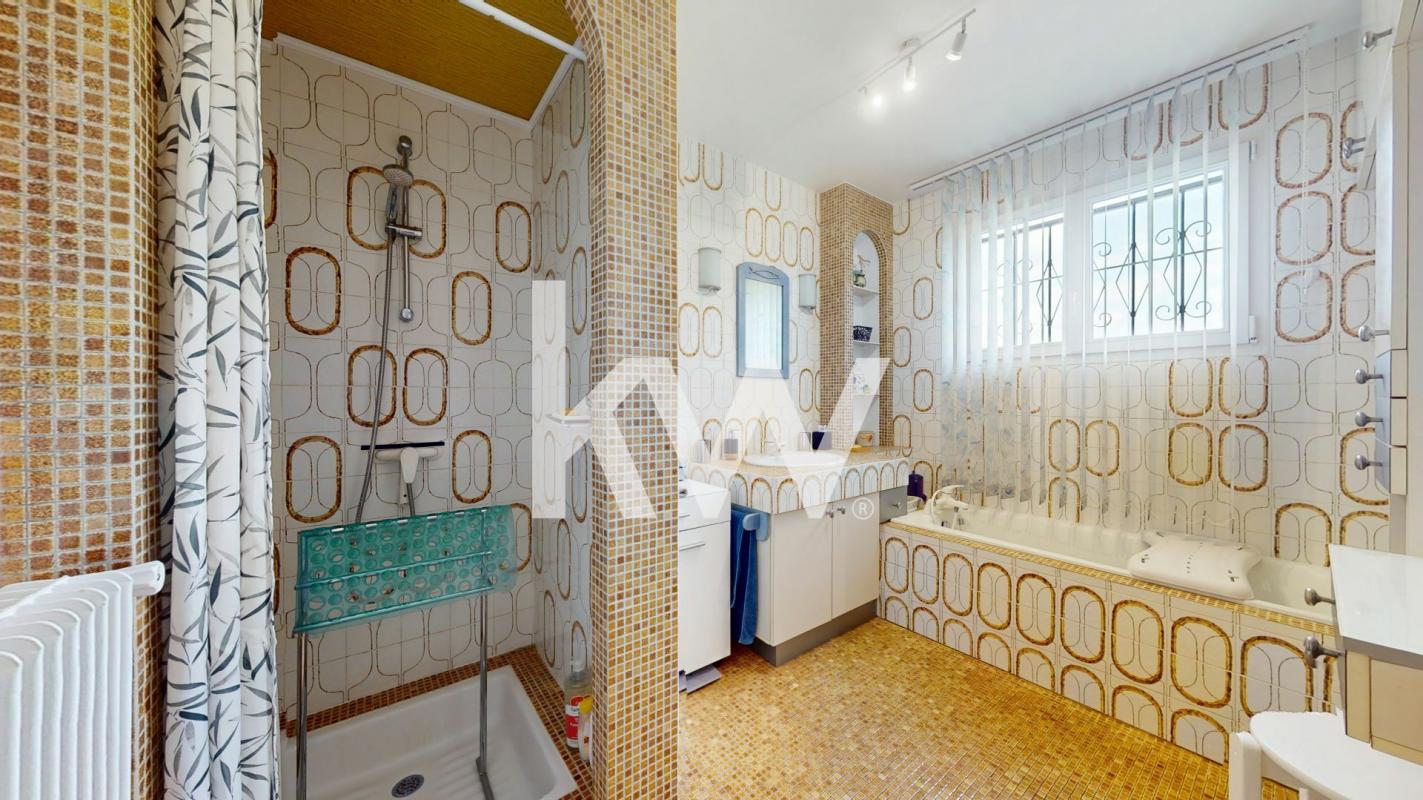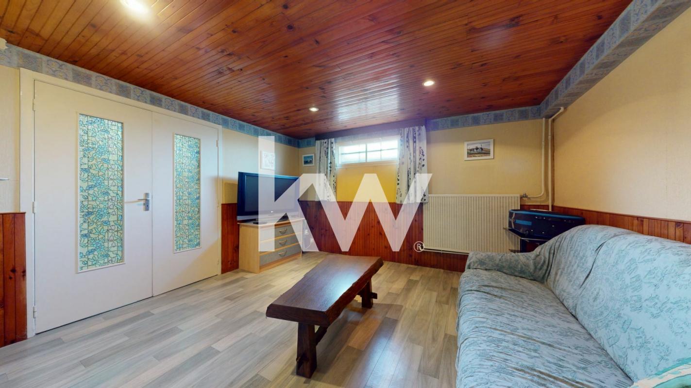 Elle dispose au sous-sol : d'un garage pour 2 voitures, une buanderie, des espaces de rangement et d'une chambre avec salle d'eau.