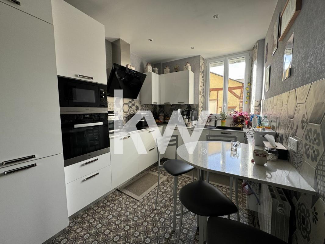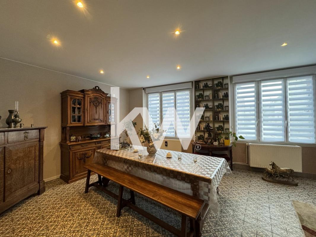 Cette maison de 9 pièces de 192 m² environ offre au rez-de-chaussée un espace salon séjour suivi d'une cuisine et d'un bureau.