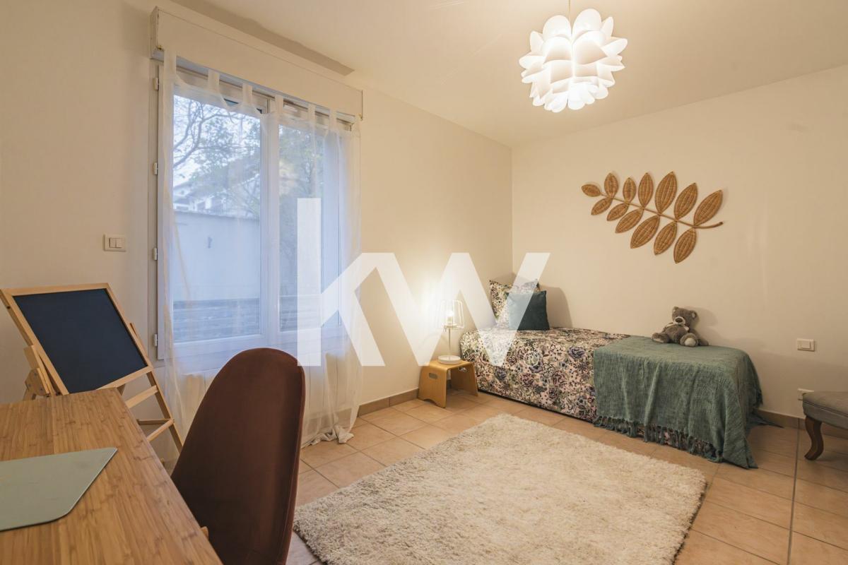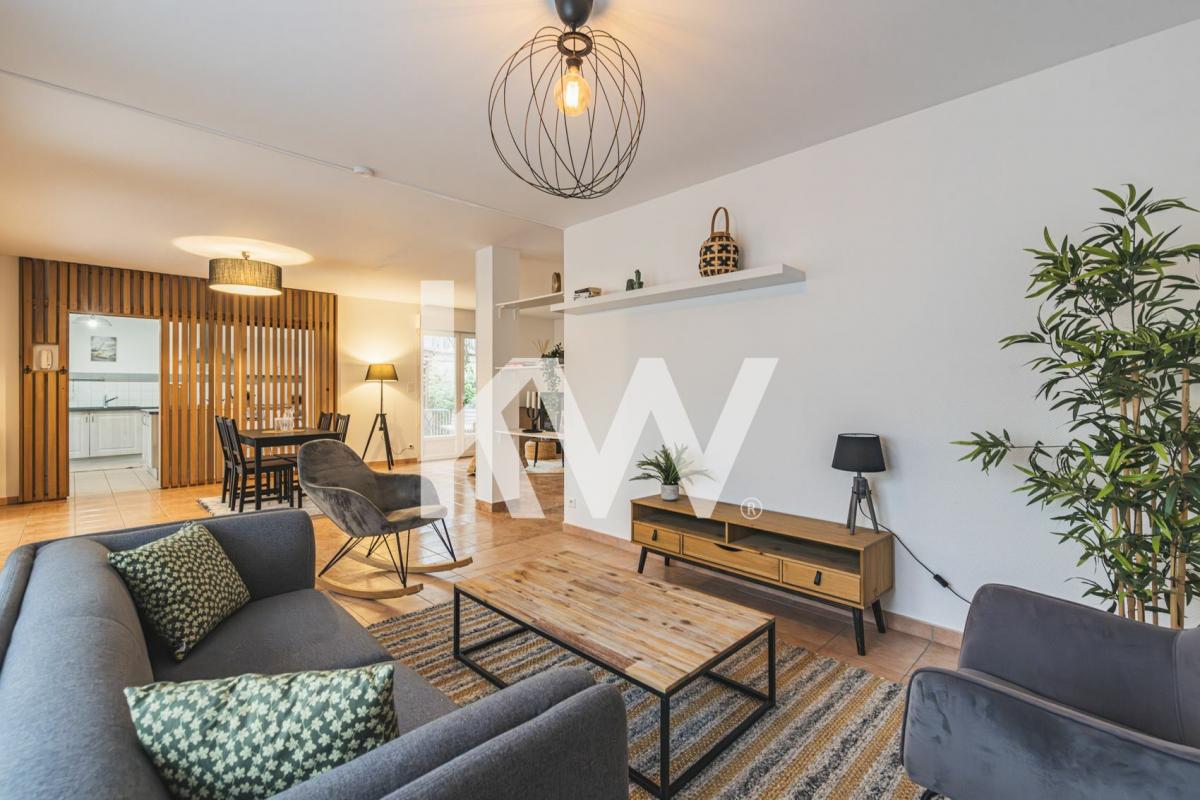 Elle dispose au rez de chaussée, d'une entrée desservant un spacieux salon séjour, une grande cuisine aménagée avec un accès direct à la terrasse et au jardin. Vous y retrouvez également 2 chambres, une salle de bain et une lingerie.
