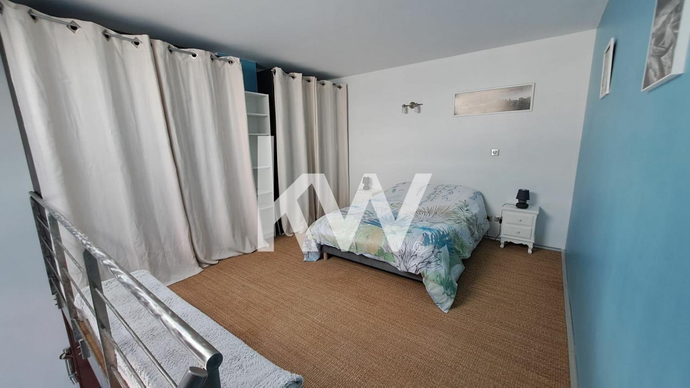 Il se trouve au 2ème et dernier étage, sans ascenseur, d'un immeuble sécurisé de 1993 et se compose d'une entrée, une salle de bains avec WC, une pièce de vie avec cuisine aménagée et équipée et un bel espace nuit en mezzanine avec grand dressing.