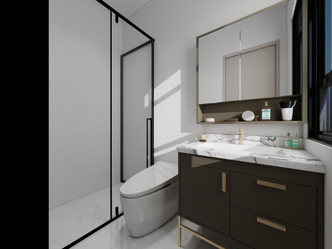 D'un beau salon avec une pièce pouvant faire office de bureau, de salle à manger ou de chambre pour enfant, d'une chambre avec une salle d'eau (douche).