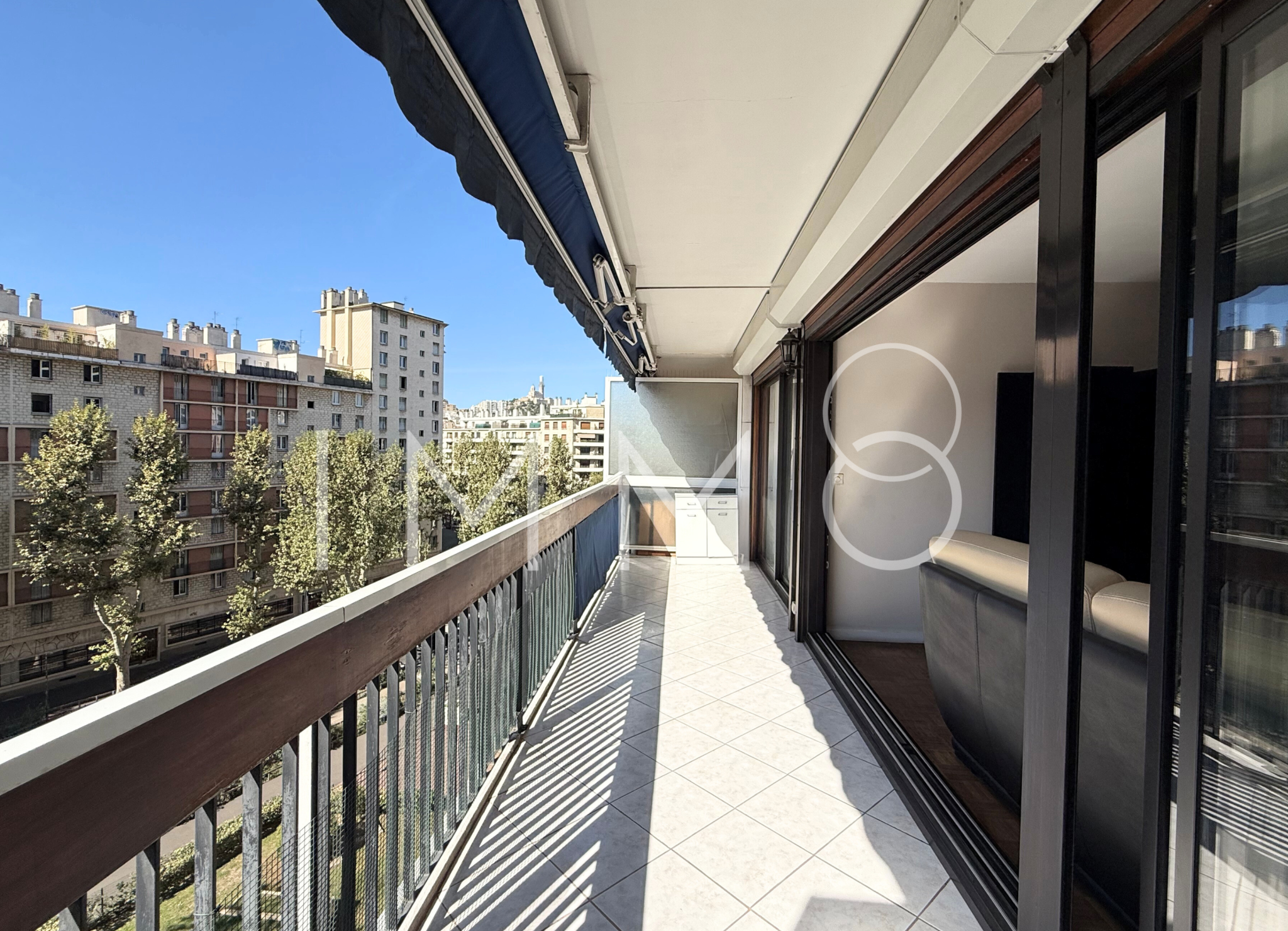 SOUS COMPROMIS - Marseille 13006 CANTINI / LE MEDITERRANEE. Dans une résidence de standing au calme. Spacieux appartement de type 3 de 71m2 en étage élevé et en très bon état. Belle terrasse de 12 m2 exposée Sud avec vue panoramique et Notre Dame de La Garde. Beau séjour / salle à manger de 23 m2 donnant sur la terrasse. Cuisine séparée avec une buanderie attenante. 2 chambres, 1 salle de bain et 1 WC indépendant avec lavabo. Un spacieux dressing indépendant qui se situe au centre de l'appartement. Cave en sous-sol. Box en sus en sous-sol de l'immeuble .Situé à deux pas du Tunnel Prado Carénage et de l'autoroute A50 ainsi que de toutes les commodités. Charges de copropriété : 275 EUR/mois comprenant eau froide, eau chaude, chauffage, gardiens. Honoraires d'agence charge vendeur inclus.
