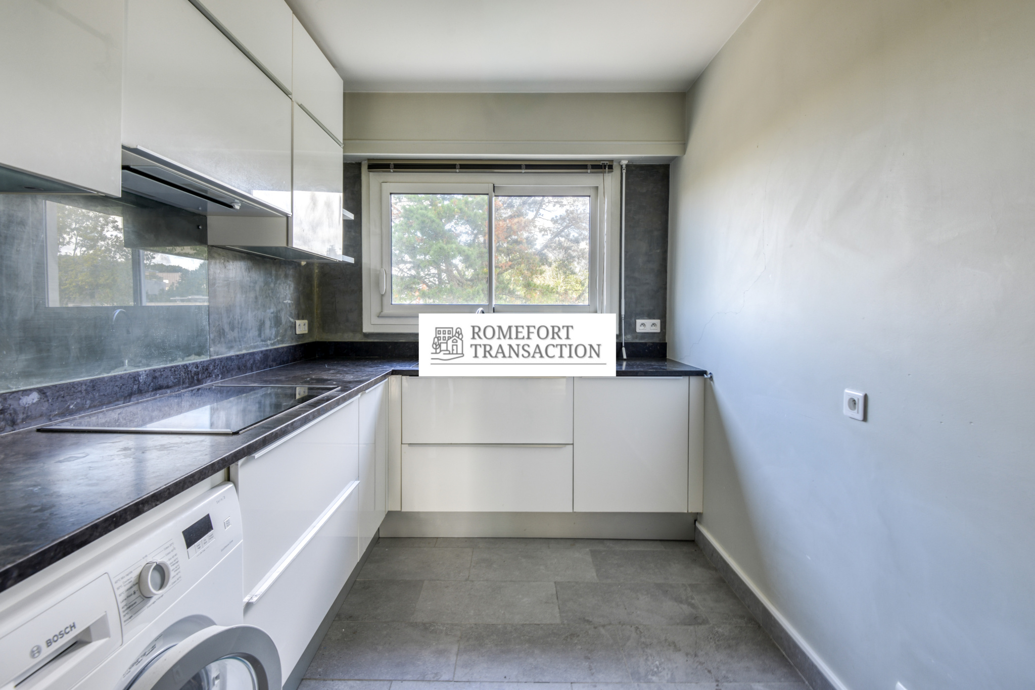 d'une entrée spacieuse avec placards, desservant une cuisine séparée parfaitement aménagée et équipée, un grand salon-séjour avec deux baies vitrées donnant sur un balcon exposé Sud, et un espace nuit composé de deux chambres côté jardin garantissant un véritable havre de paix, une salle de bains, WC séparé et possible 3è chambre.