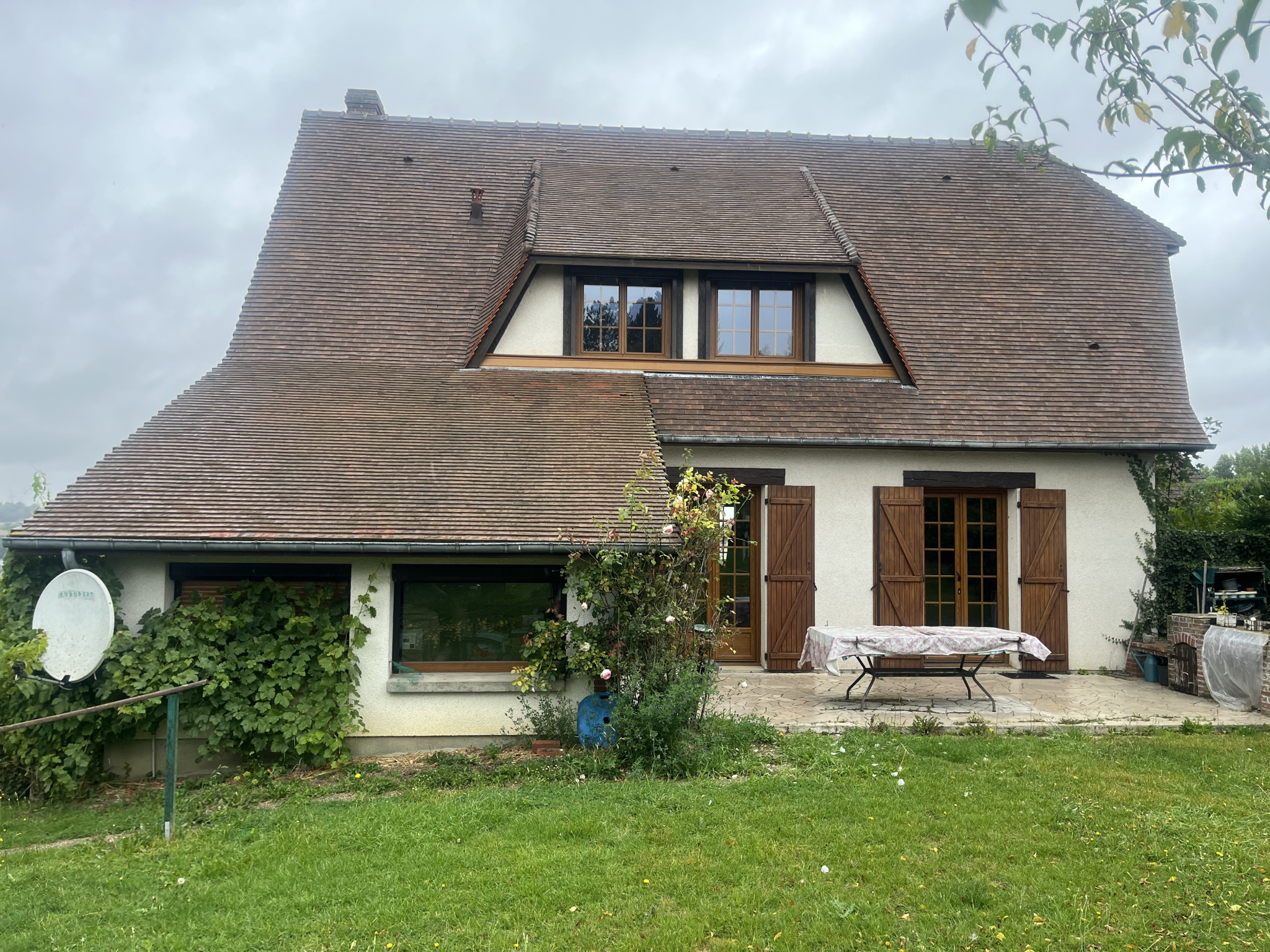 Toiture tuiles correcte, Double vitrage bois, chauffage électrique, tout-à-l'égout .DPE E.