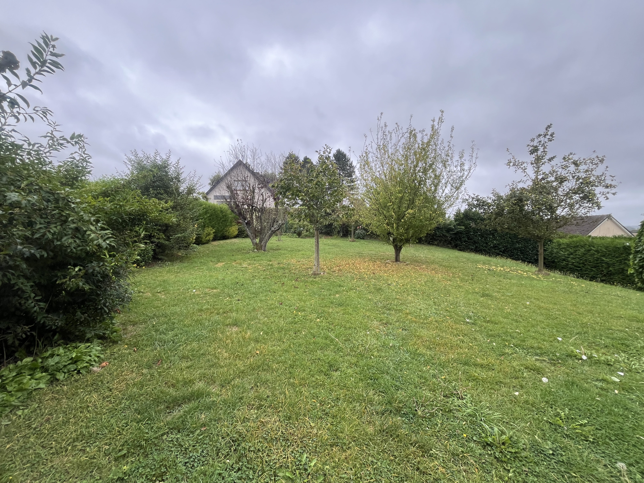 Extérieur de 934 m2 avec terrasse, bucher, arbres fruitiers.