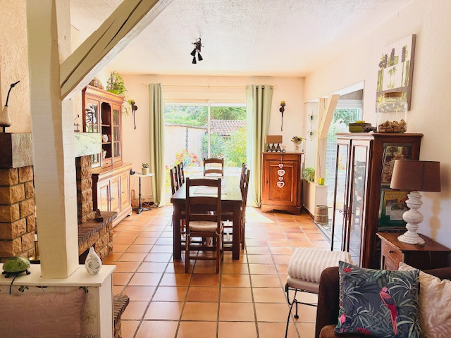 Cette villa comprend au RDC une magnifique pièce salon + salle à manger, une cuisine équipée, une buanderie avec douche, un W.C, et un garage attenant ,une cave avec vide sanitaire.