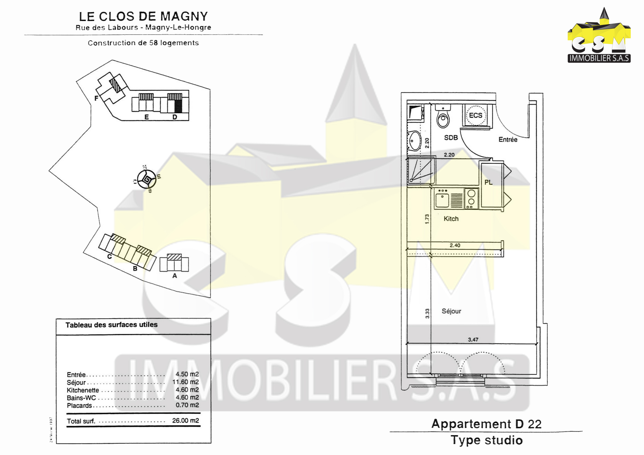 Au coeur ville, votre agence CSM immobilier vous propose ce grand studio de 24.75 M2 situé au deuxième étage d'une copropriété sécurisé de 1996 composé d'une entrée avec placard, d'un séjour avec coin cuisine, d'une salle de bains avec WC. Chauffage et production d'eau chaude individuels et électriques. Commodités à proximités (Ecoles, commerces, transports, restaurants...) Copropriété de 104 lots dont 64 lots d'habitation. (Pas de procédure en cours). Charges annuelles : 731 euros.