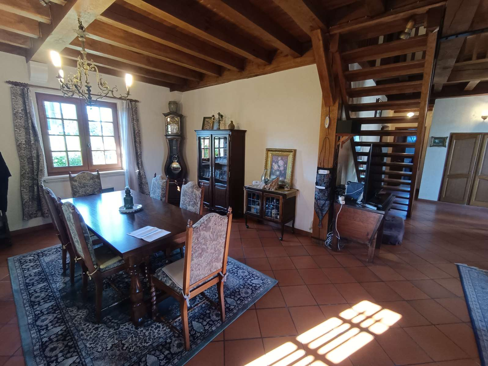 ? Sous-sol : garage avec porte automatique, chaufferie, cave sur sol en pierre, deux débarras, grande cuisine d'été donnant sur une pièce conviviale, ainsi qu'une salle d'eau.