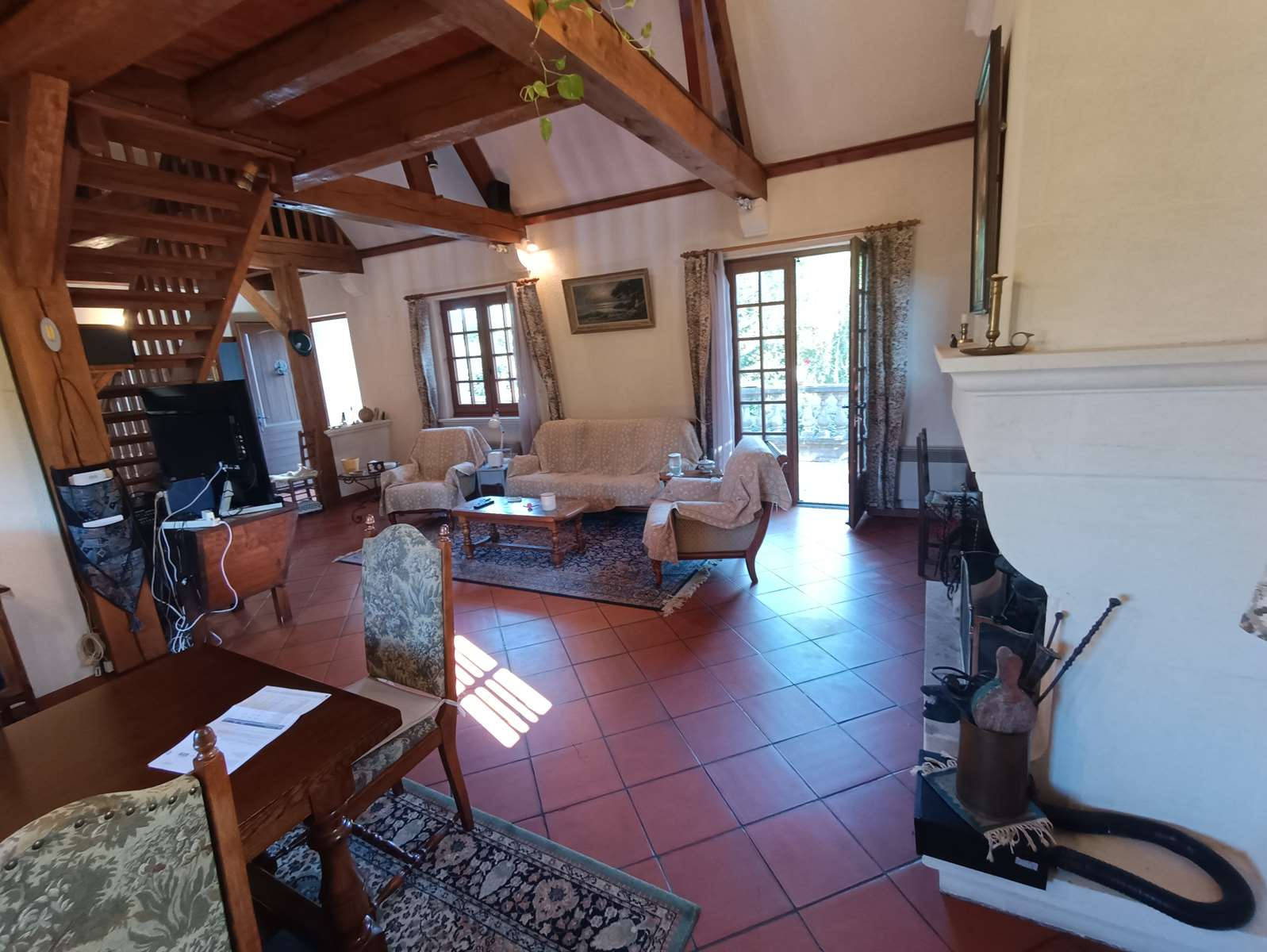 ? Rez-de-chaussée : vaste pièce de vie avec charpente apparente et cheminée à foyer ouvert, cuisine aménagée et équipée ouvrant sur le sous-sol, trois chambres, salle de bains et WC séparés.