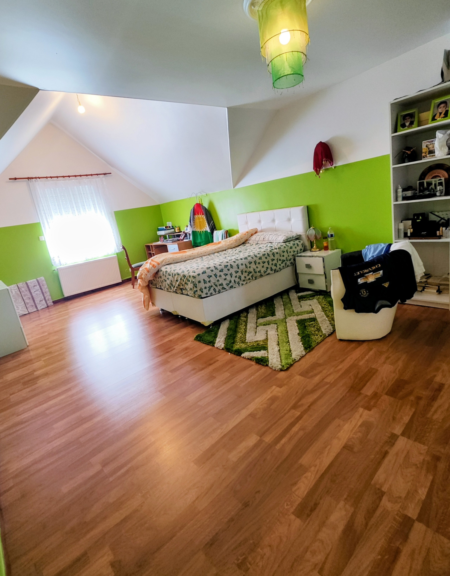 - Au premier niveau : un dégagement desservant deux chambres, une pièce de jeux, salle de bains avec Wc et une grande chambre de 28m2.