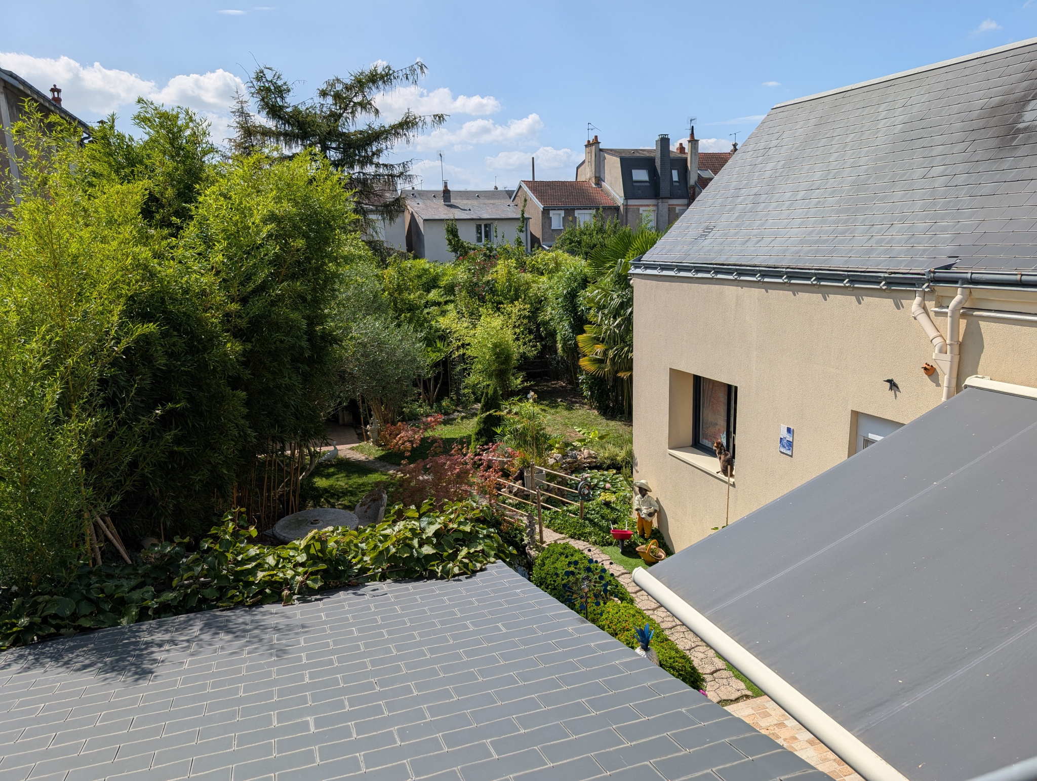À l'extérieur, un magnifique jardin arboré de 200 m2, sans vis-à-vis, s'étire en profondeur et invite à la contemplation : deux petites mares peuplées de carpes, statues, petit pont, nénuphars... Le tout completé par une terrasse de 32 m2 couverte avec espace bar et store banne électrique. Un atelier de 20 m2 construit récemment au fond du jardin complète cet extérieur. L'ensemble crée une atmosphère bucolique rare en milieu urbain, à l'écart du bruit des voitures.