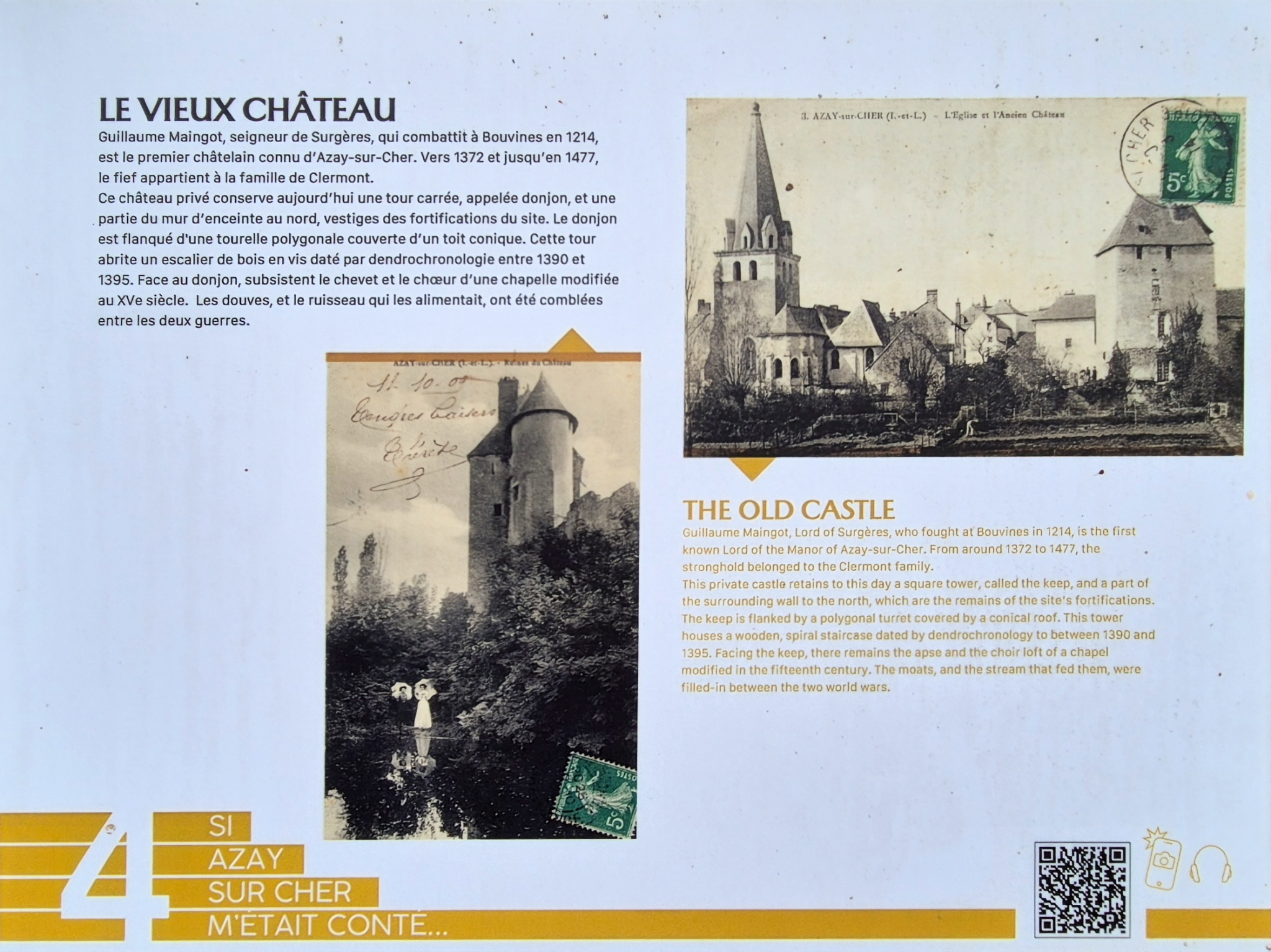 Donjon historique : Érigé en 1290, ce donjon, partiellement restauré, se distingue par son toit en ardoises naturelles à quatre pans et sa tourelle. D'une surface de 105 m2 sur quatre niveaux plus un grenier, il offre de généreuses hauteurs sous plafond, de nombreux éléments d'époques et des espaces à personnaliser selon vos envies.