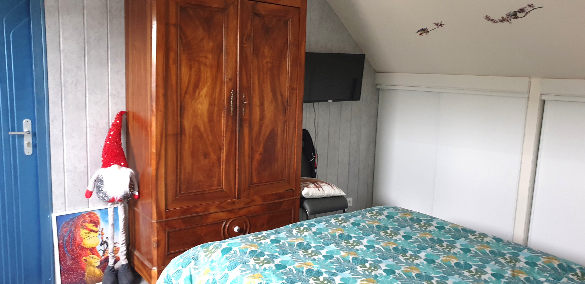 A l'étage, l'espace nuit se compose de deux chambres supplémentaires dont une est équipée d'une climatisation réversible,un bureau avec dressing ainsi qu'une salle d'eau avec WC.