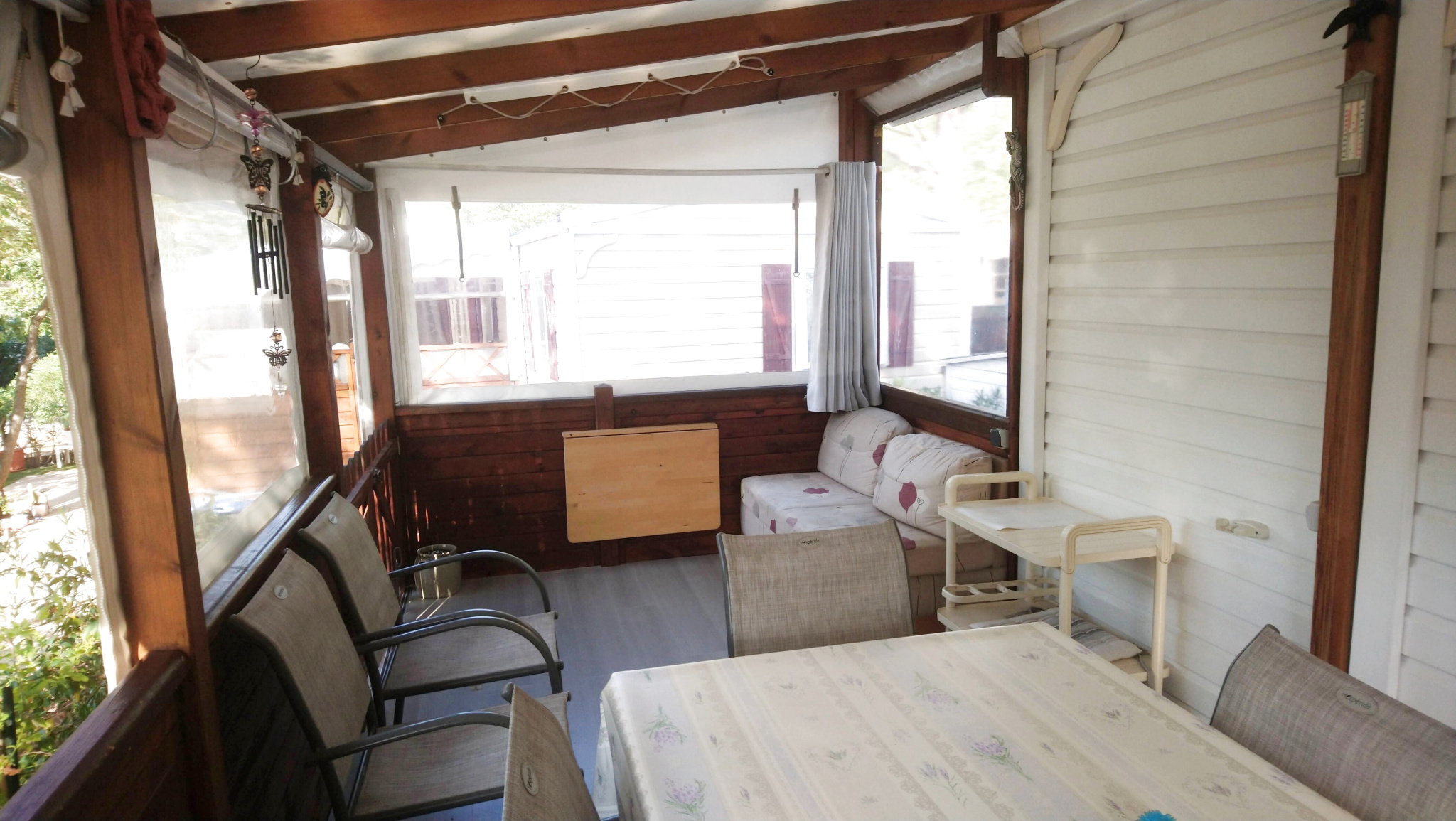 Dans un parc de loisirs avec toutes les commodités et services (4 piscines dont 1 chauffée à partir de avril), jacuzzi, balnéo, tobbogan, salle de fítness, mini golf, terrain de foot, tennis, 2 padels, terrain de boules, superette, restaurant, animations. Mobilhome de marque IRM Modèle Super Titania de 32m2 comprenant un séjour, une cuisine équipée, 2 chambres, 1 salle d 'eau, 1 wc, une terrasse couverte et fermée, une terrasse extérieure, 2 abris jardin.