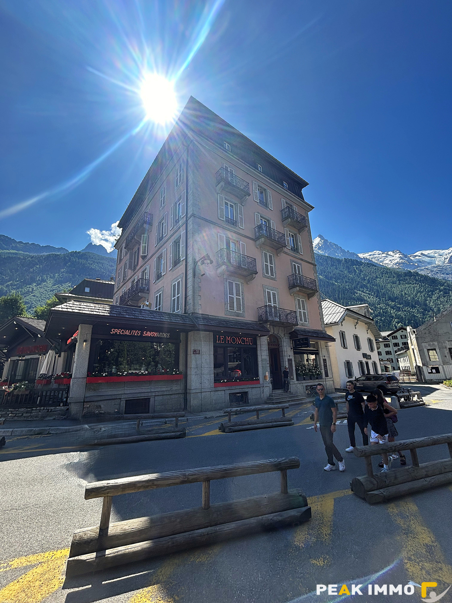 Charmant appartement de 2 pièces au troisième étage d'une résidence historique, en plein coeur de Chamonix. Il se compose d'un vaste séjour avec kitchenette, d'une grande chambre, d'une salle de bains avec WC ainsi que d'un espace buanderie/dressing. Exposé Nord-Est, il offre une vue dégagée sur la place Balmat et l'Arve depuis le salon et la chambre.