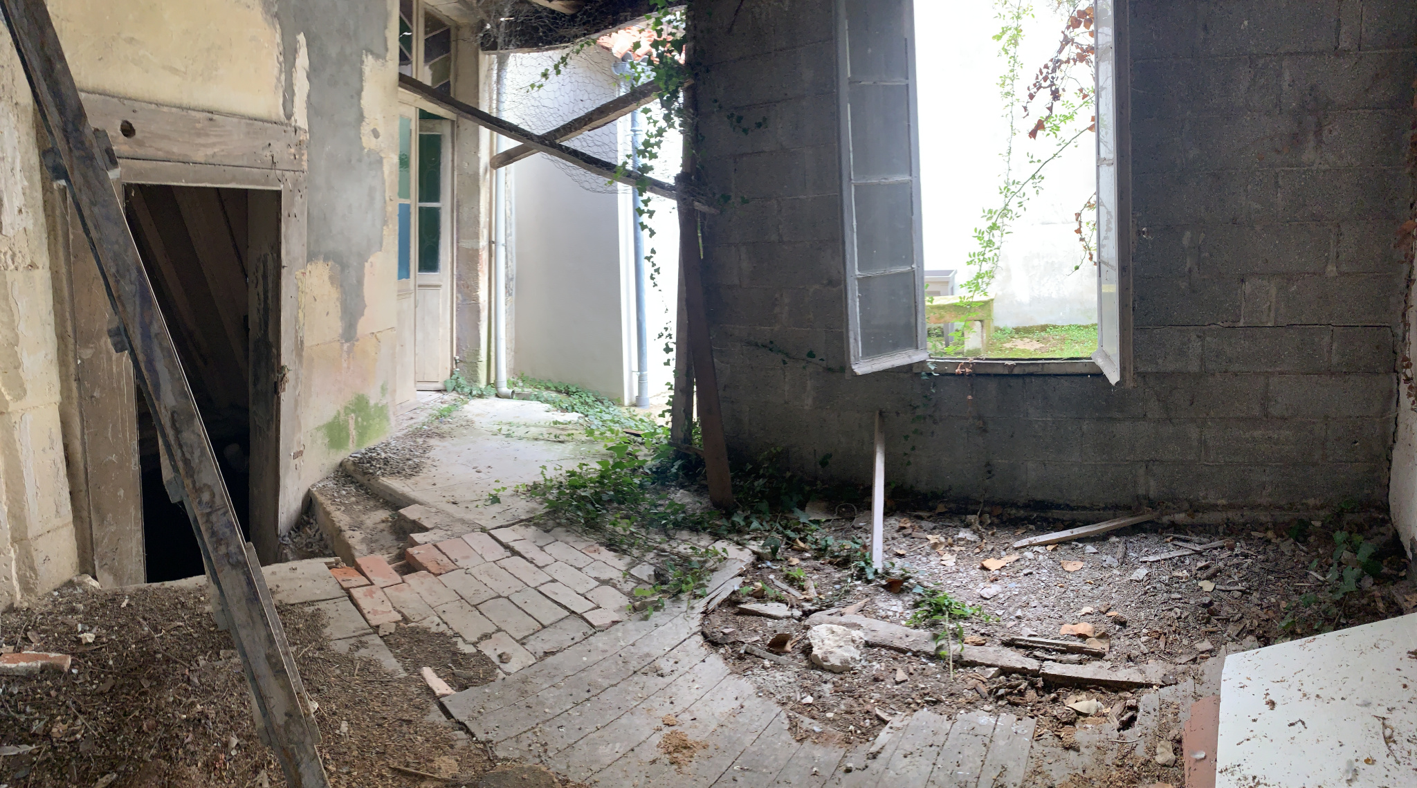 - au rez-de-chaussée : entrée de 5.50 m2, séjour salon de 9.20 m2, cuisine de 4.30 m2 ( à restaurer ), patio de 18 m2, pièce de 11 m2 à restaurer ( plomberie , élec, isolation,... )