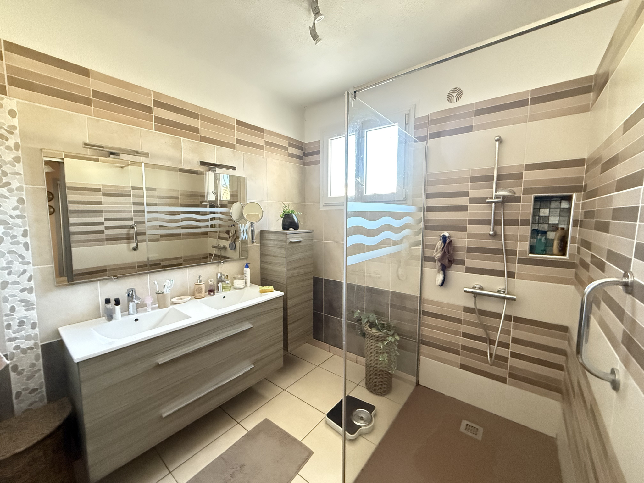 Elle se compose d'une pièce de vie lumineuse avec une belle exposition d'env. 40m2 , une cuisine aménagée et ouverte, de deux chambres confortable avec rangement . Une véranda aménagée idéale comme espace détente ou coin nuit supplémentaire , de deux salles d'eau et deux wc séparés.