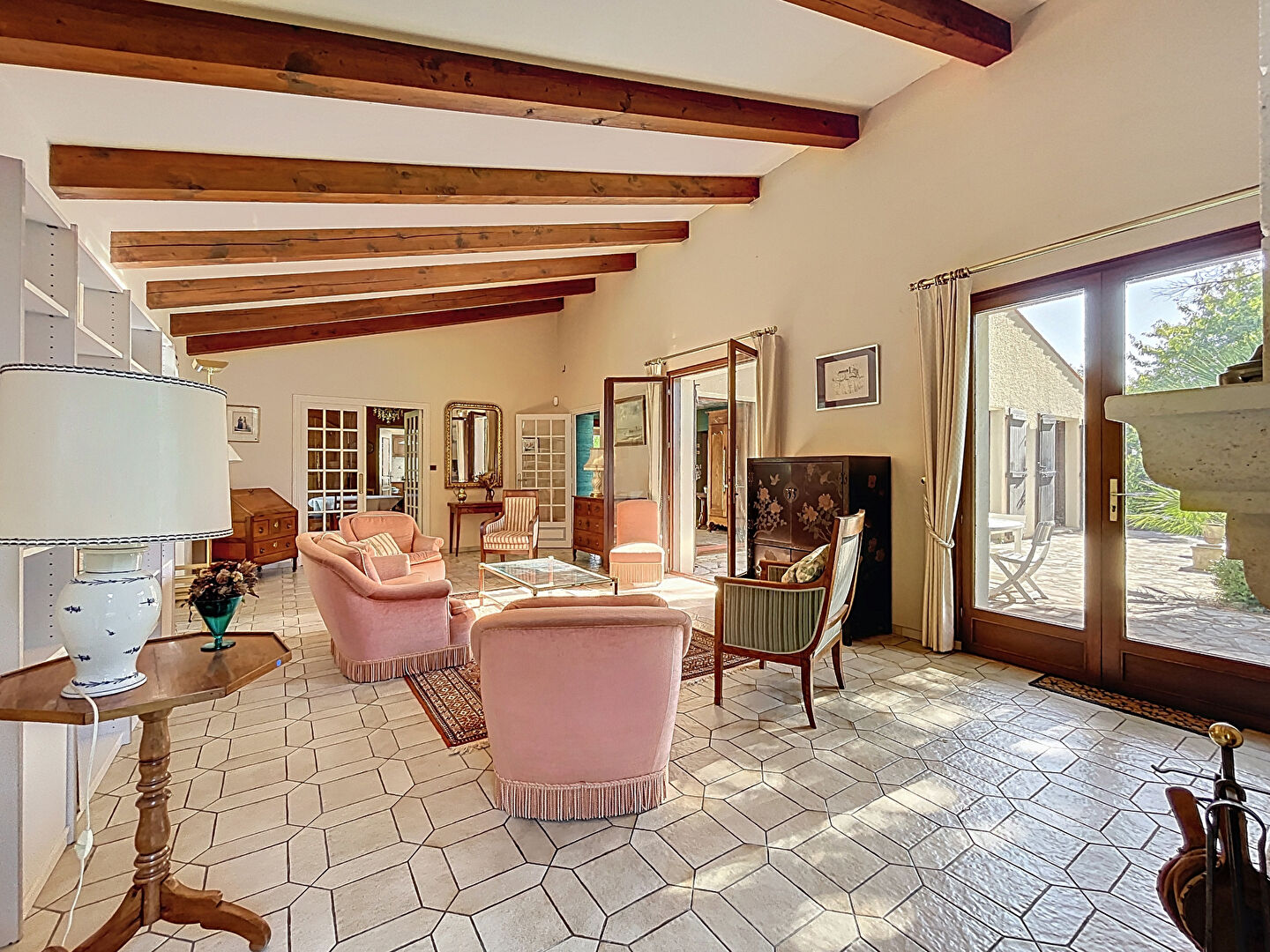 Un vaste séjour lumineux avec cheminée,