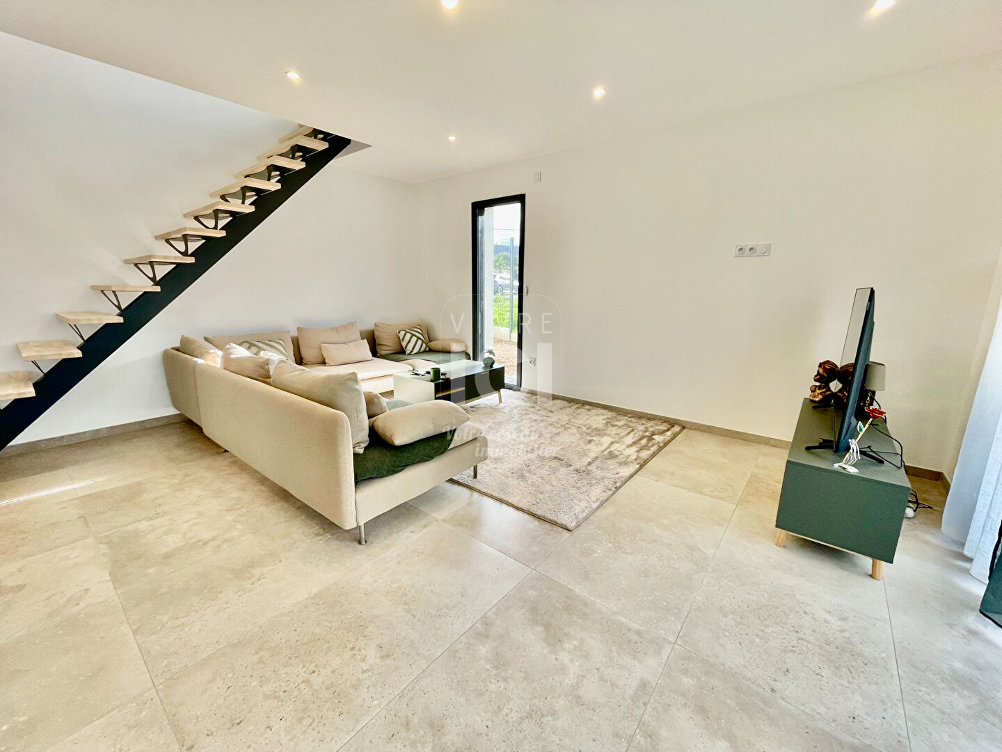 Ce bien vous offrira au rez de chaussée une entrée avec WC séparé, desservant une lumineuse pièce de vie avec sa cuisine ouverte équipée et aménagée, suivis de son cellier ainsi que de son garage attenant