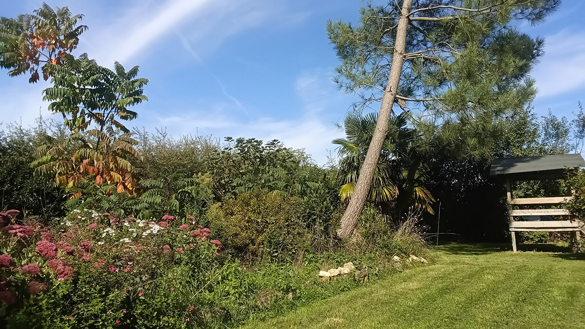 Beau jardin à l'avant et à l'arrière pour un total de 1265 m2