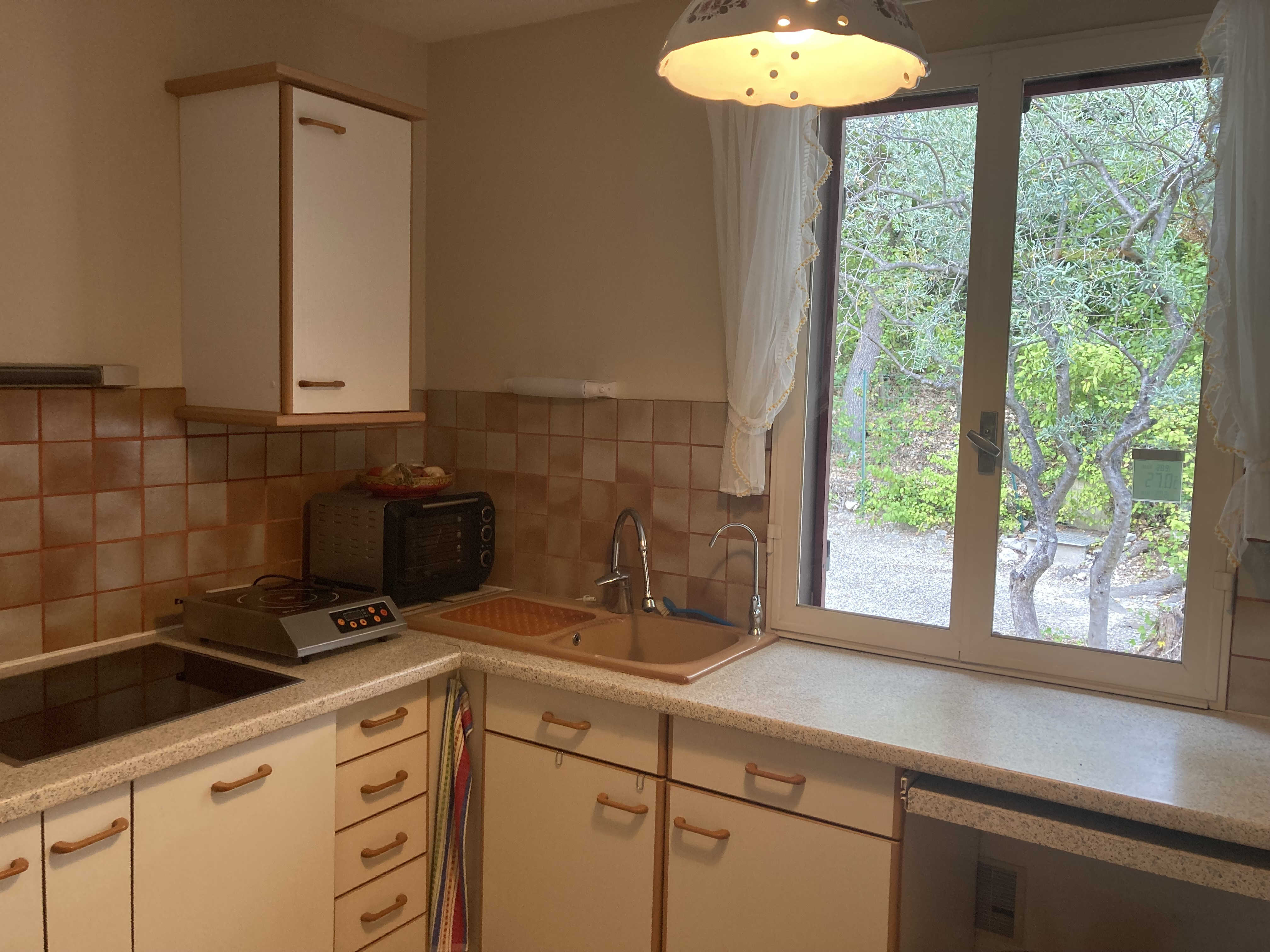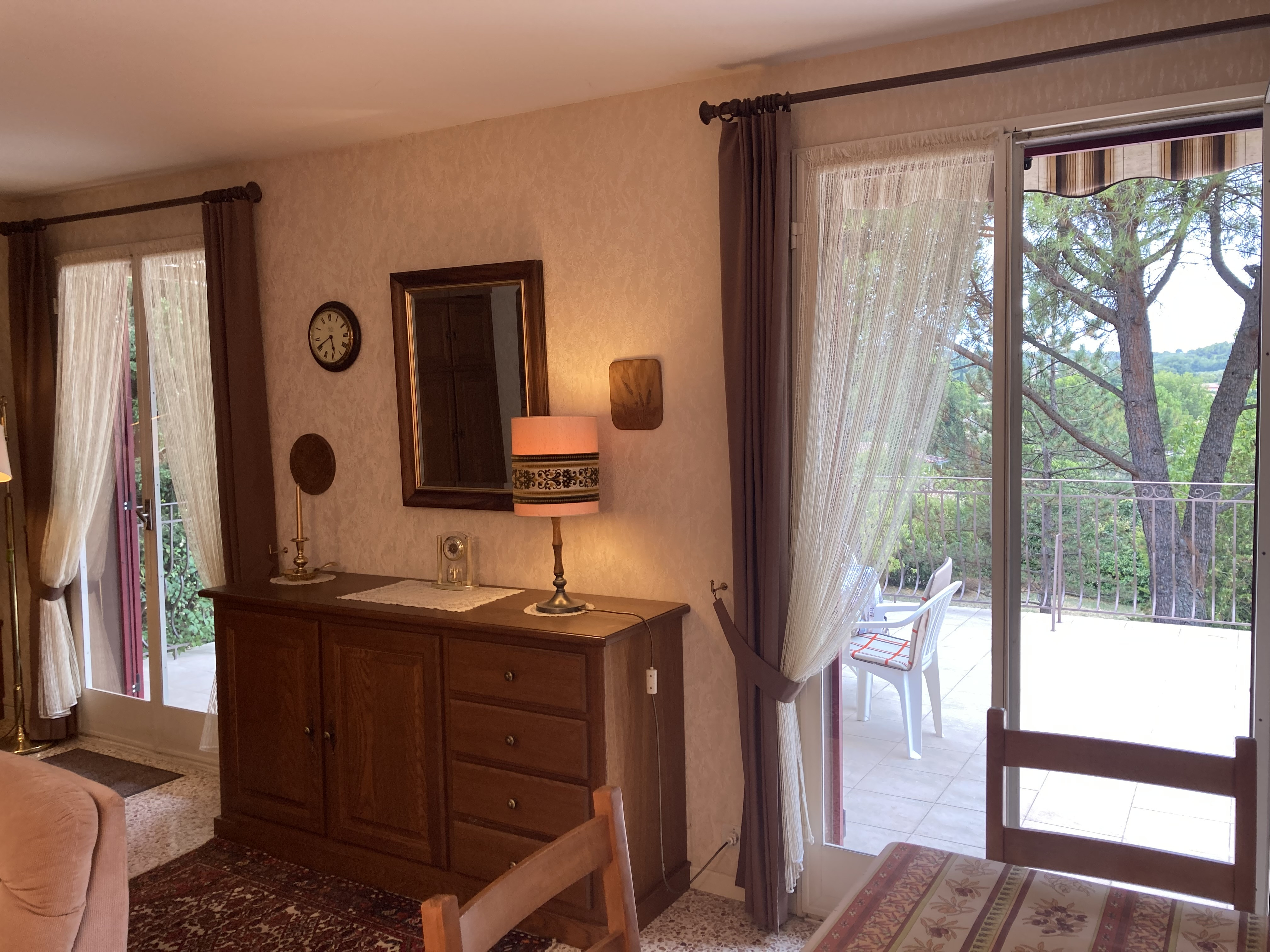 En position dominante, avec vue dégagée et imprenable sur le village . Au grand calme et située à 3mn en voiture et 15 mn à pied de toutes commodités, maison sur 2 niveaux . RDC (1976) : Entrée ,séjour salon 28 m2 accès direct sur terrasse (VUE ) par 2 portes fenêtres, cuisine 7.50 m2 aménagée et équipée ( plaque de cuisson, petit lave vaisselle ), couloir avec placard, chambre I 10 m2 avec placard, chambre II 13 m2 avec grand placard, salle de bains, wc . Climatisation dans le séjour salon et la chambre II . Rez-de-jardin Indépendant ( 1993 ) : Pièce de vie 28 m2 accès direct sur terrasse et jardin, salle d'eau wc . Petite dépendance pouvant être transformée en cuisine . Terrain clos 2006 m2 arboré d'oliviers, cerisiers, figuier, noyer, pins . Equipements : Eau de la ville, eau du canal, chauffage central au fuel et pompe à chaleur ( chaud - froid ), eau chaude par panneaux solaires . Double et simple vitrage, isolation combles et extérieure, volets aluminium, stores sur les 2 terrasses . Fosse septique . - FN_1760934039