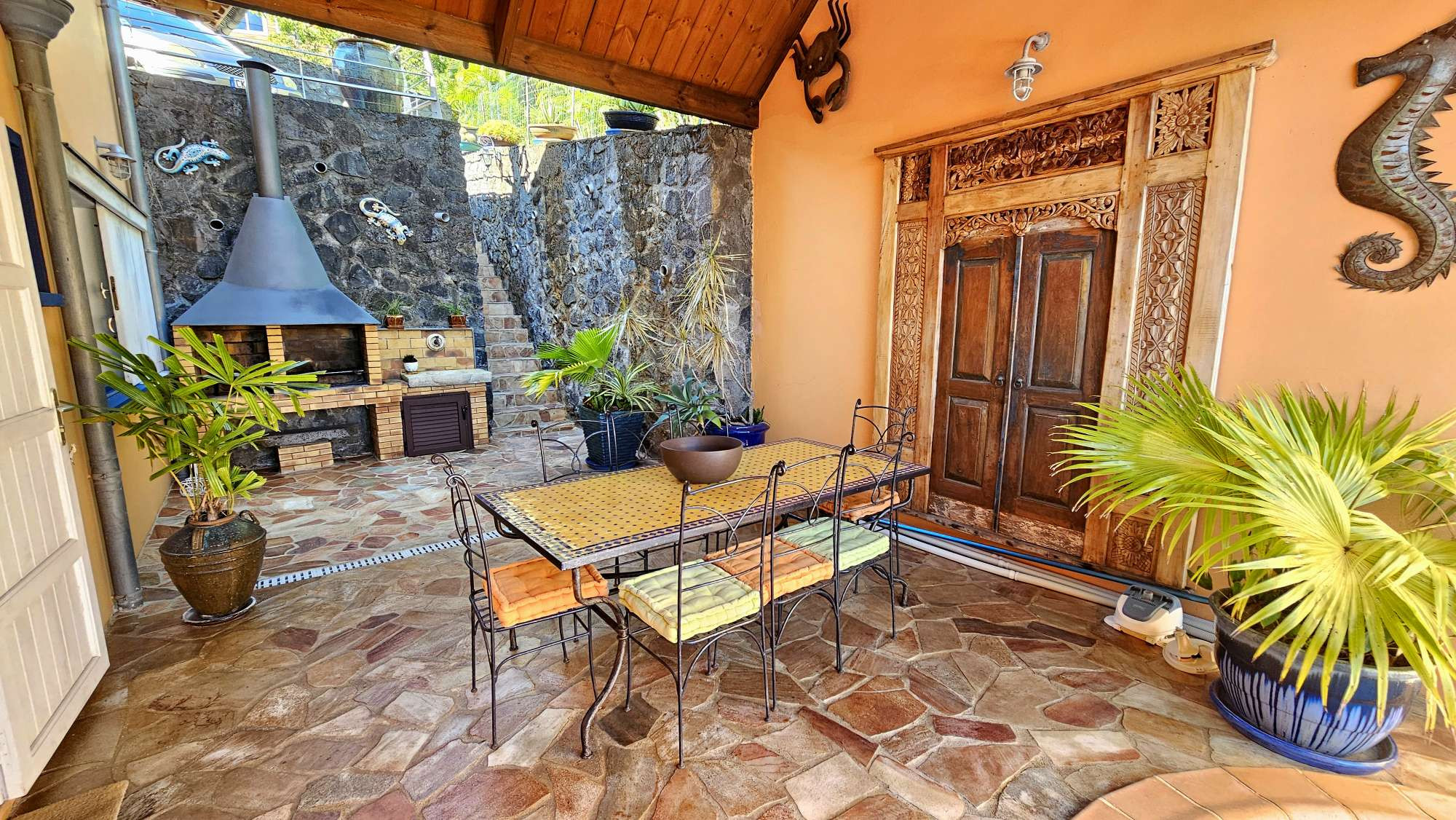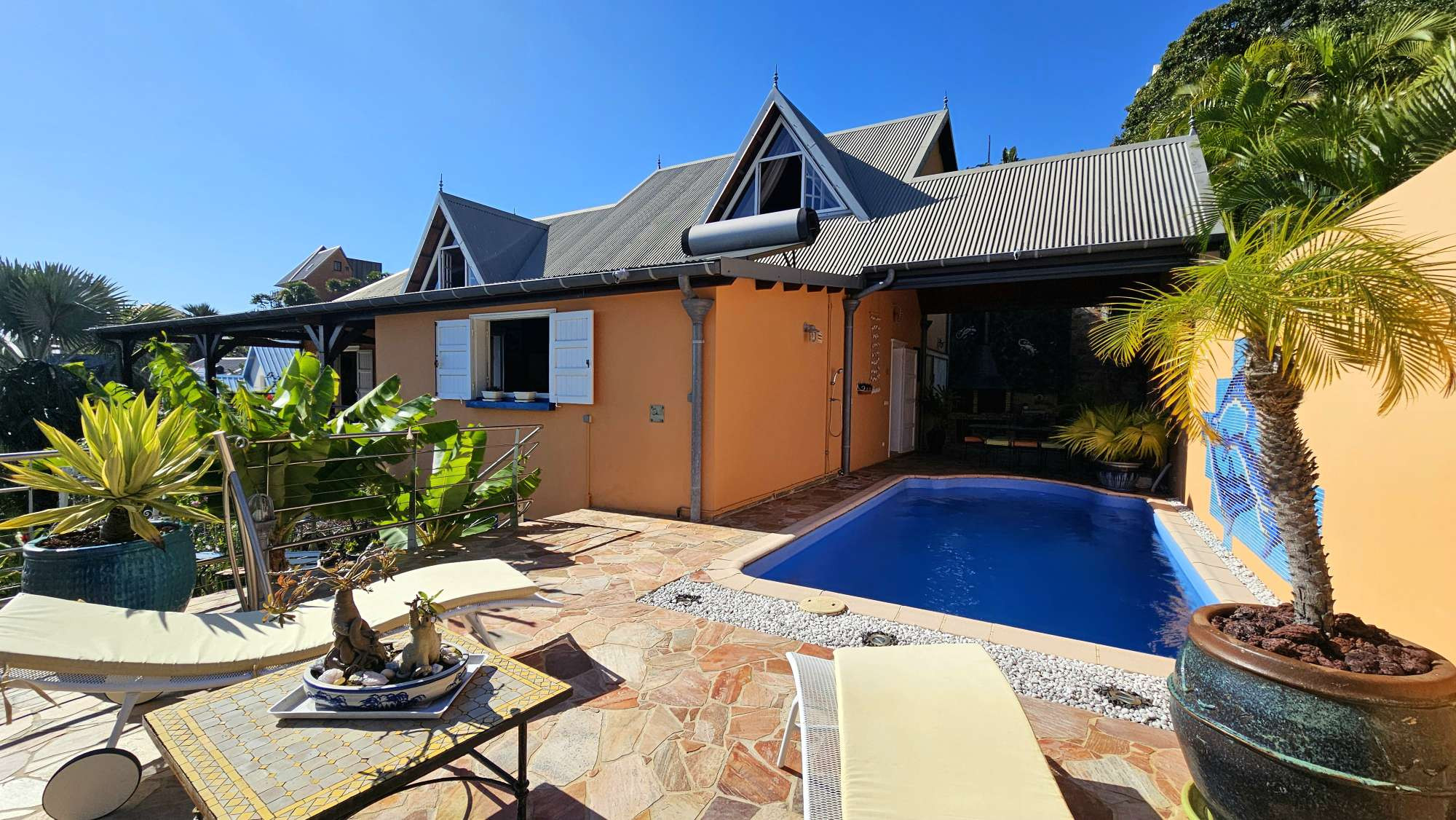 Bellepierre - Villa d'exception avec vue mer et montagne à 5 minutes du CHU Félix Guyon, dans un lotissement privé très recherché. Au c?ur de l'un des quartiers les plus recherchés de Saint-Denis, cette villa de caractère à l'architecture raffinée, d'environ 210 m² habitables se déploie sur un terrain clos et paysager de 815 m², à l'abri des regards, dans un environnement paisible et privilégié. Dès l'entrée, le charme opère : cette maison s'annonce différente des autres... L'originalité commence par l'accès, sur ce premier niveau, à la 1ere suite avec salle d'eau et WC, ainsi que de beaux volumes, d'aucun vis-à-vis et d'une très belle charpente bois. On descend quelques marche et on accède alors à une élégante mezzanine aménagée en bureau, dominant le séjour. Nous prenons maintenant le très bel escalier fait sur mesure par des artisans bénéficiant d'un savoir faire exceptionnel, Les compagnons du Devoir et du Tour de France afin d'accéder au niveau principal de la maison. On y retrouve le vaste séjour / salle à manger qui se prolonge par une grande varangue de plus de 30 m² offrant une vue imprenable sur la mer et la montagne. La cuisine, conçue avec des matériaux de qualité, bénéficie d'un accès à la varangue d'un côté mais également à l'espace extérieur, idéal pour recevoir, avec piscine, table à manger et cuisine extérieure. Sur ce niveau, une 2e suite spacieuse avec salle d'eau et WC privatifs. Au niveau le plus bas de la maison, Une dernière suite totalement indépendante pour les invités, un grand garage où l'on peut recevoir ou garer jusqu'à 5 véhicules, une grande buanderie avec de nombreux rangements. Cet espace à été pensé à l'origine afin d'être, si besoin, transformé en logement totalement indépendant. La maison est également entouré d'un joli jardin aménagé qui vous réserve quelques surprises.... Plus de précisions sur cette belle villa : Un savoir-faire d'exception: La charpente ainsi que l'escalier sur mesure ont été réalisés par les Compagnons du Devoir et du Tour de France, réputés pour leur exigence et la qualité inégalée de leurs ouvrages. Chaque détail reflète un véritable travail d'artisanat haut de gamme. Prestations exclusives: Piscine monocoque Sunset au sel, chauffe-eau solaire, portail et porte de garage automatisés, toiture travaillée et finitions créoles? autant d'éléments qui confèrent à cette villa son caractère unique. Taxe foncière : 3 310.00 euros PRIX DE VENTE : 950 000 ? TTC* * (Honoraires de vente charge vendeur) Contact : Caroline JOLU 06 92 38 67 52 ( si le numéro n'est pas visible ici merci de consulter l'annonce depuis notre site internet.) Fixe de l'agence : 02 62 50 35 25 Mail : cjolu@idb.re Site : www.limmobilieredebourbon.com Les informations sur les risques auxquels ce bien est exposé sont disponibles sur le site Géorisques : https://www.georisques.gouv.fr/ - FN_1759206056