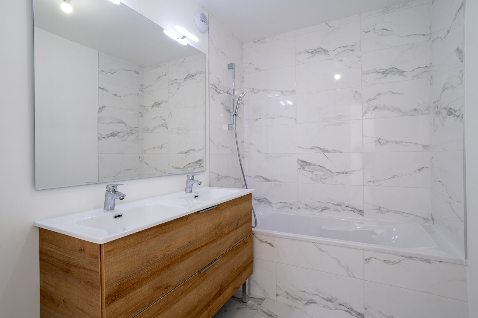 - Aménagements haut de gamme : La salle de bains est entièrement équipée avec un meuble vasque, une robinetterie thermostatique, et une faïence murale toute hauteur. Le hall d'entrée, conçu par un architecte d'intérieur, renforce l'aspect soigné de la résidence.