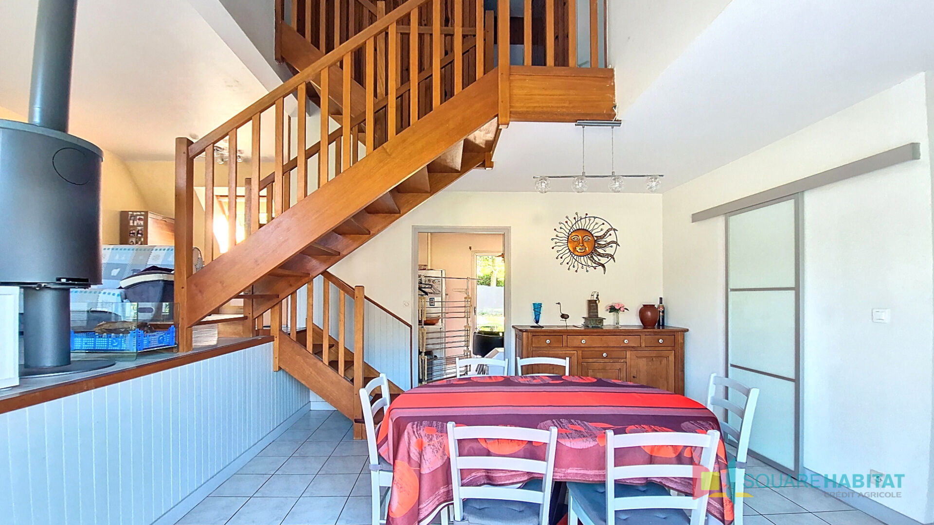 L'entrée avec placard dessert une suite parentale avec salle d'eau attenante, WC indépendant, salle à manger accompagnée d'une cuisine entièrement aménagée et équipée, qui s'ouvre sur une belle terrasse et un jardin arboré, parfait pour profiter de belles journées à l'abri des regards.