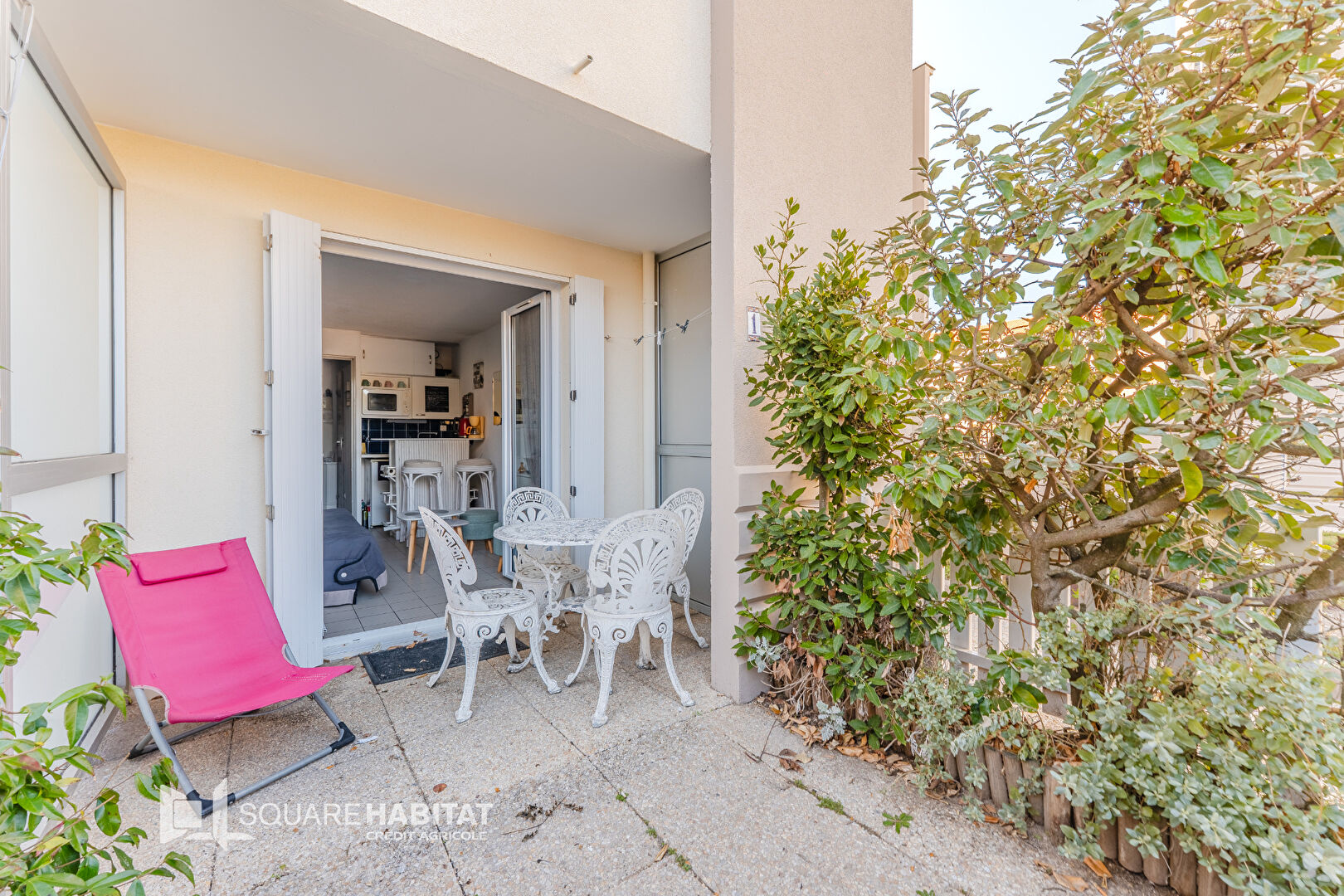 Parfaitement entretenu, il offre une entrée , une pièce de vie lumineuse avec kitchenette, une salle de bains avec WC, ainsi qu'une agréable terrasse clôturée et fleurie pour profiter pleinement des beaux jours.