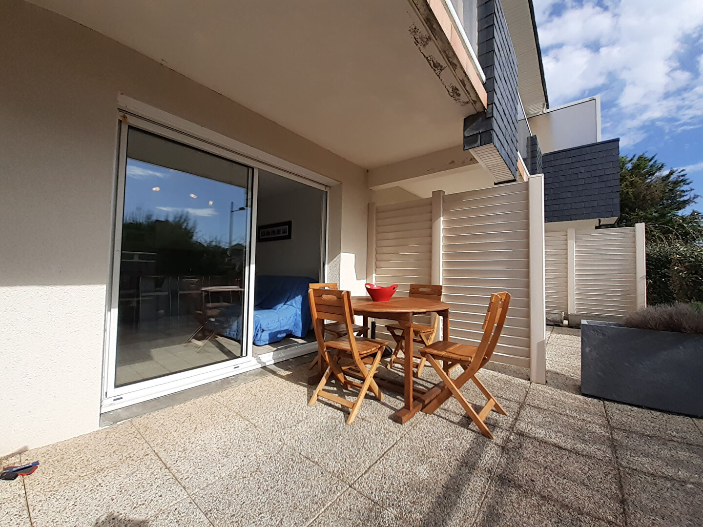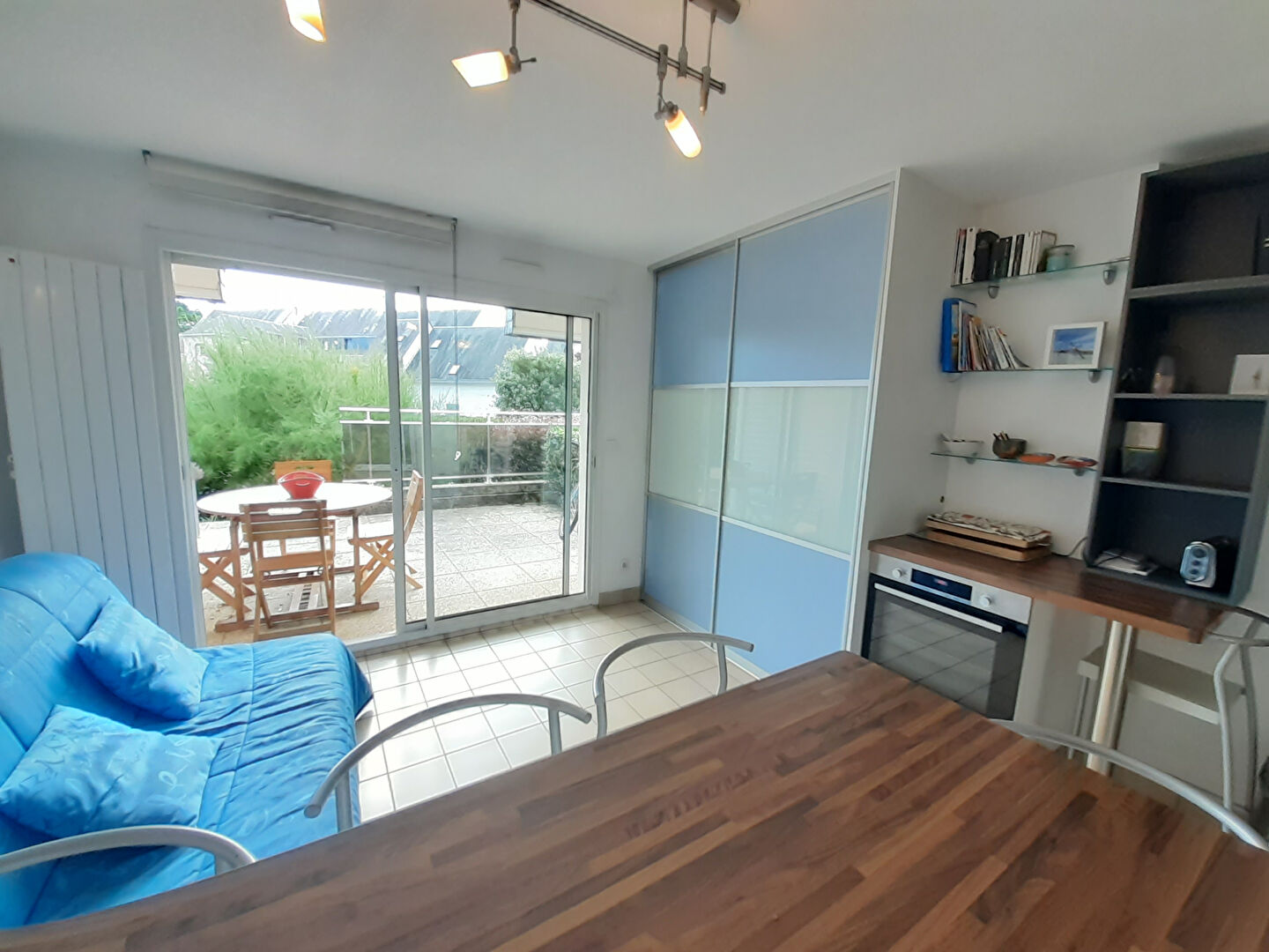 UNIQUEMENT EN VENTE A L AGENCE. Dans Quartier recherché , Très proche des plages de Légenèse et de Ty Bihan, superbe appartement en rez de chaussée de type 2 disposant d'une chambre, belle pièce de vie avec cuisine ouverte aménagée et équipée de belle facture. grande terrasse de 14 m² et un emplacement de parking privatif. calme et sérénité assurés. TRES BON ETAT GENERAL.