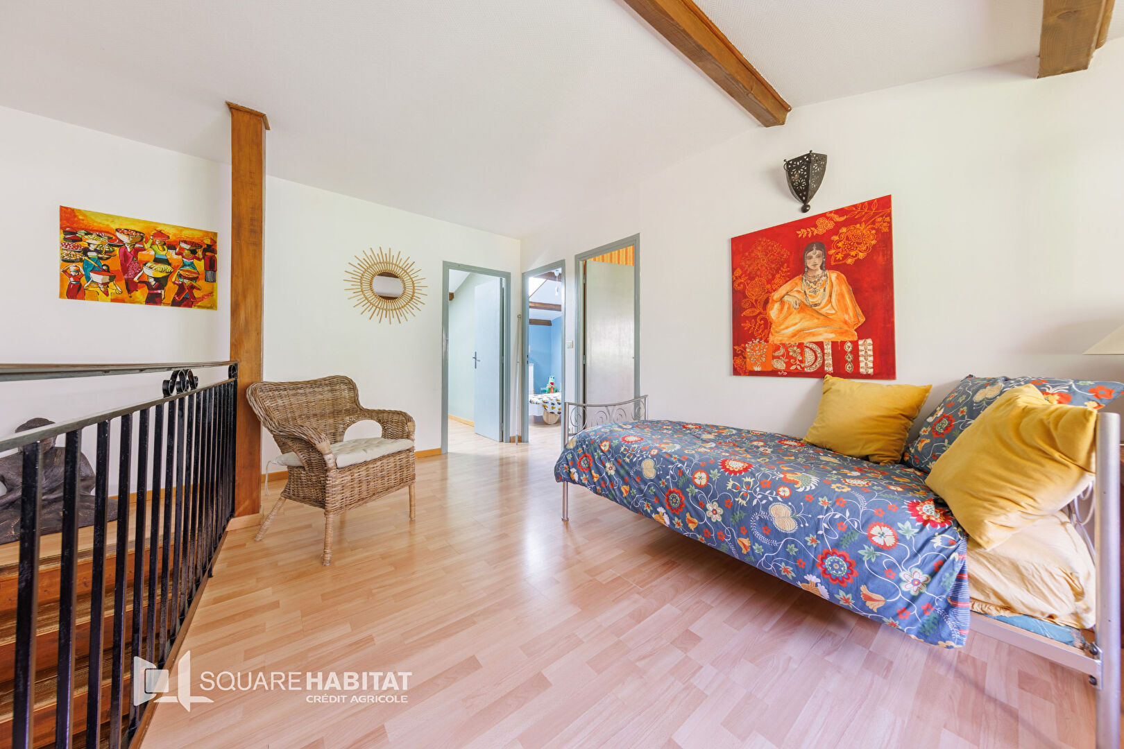*au deuxième étage : un grand espace mezzanine, et trois chambres.