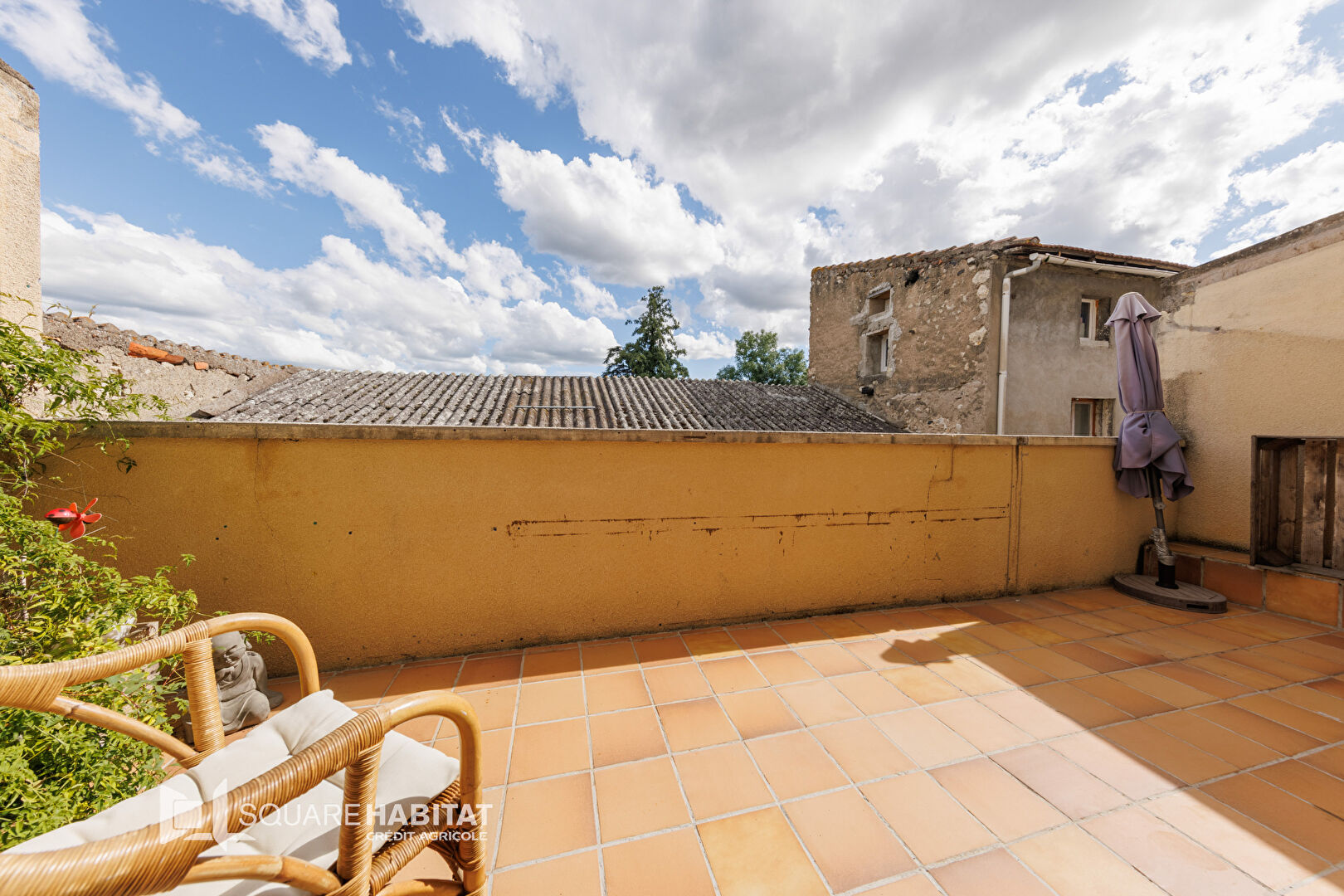 *au premier étage : une cuisine aménagée équipée avec un accès sur une terrasse sans vis-à-vis, un salon-séjour, une salle d'eau et un WC ;