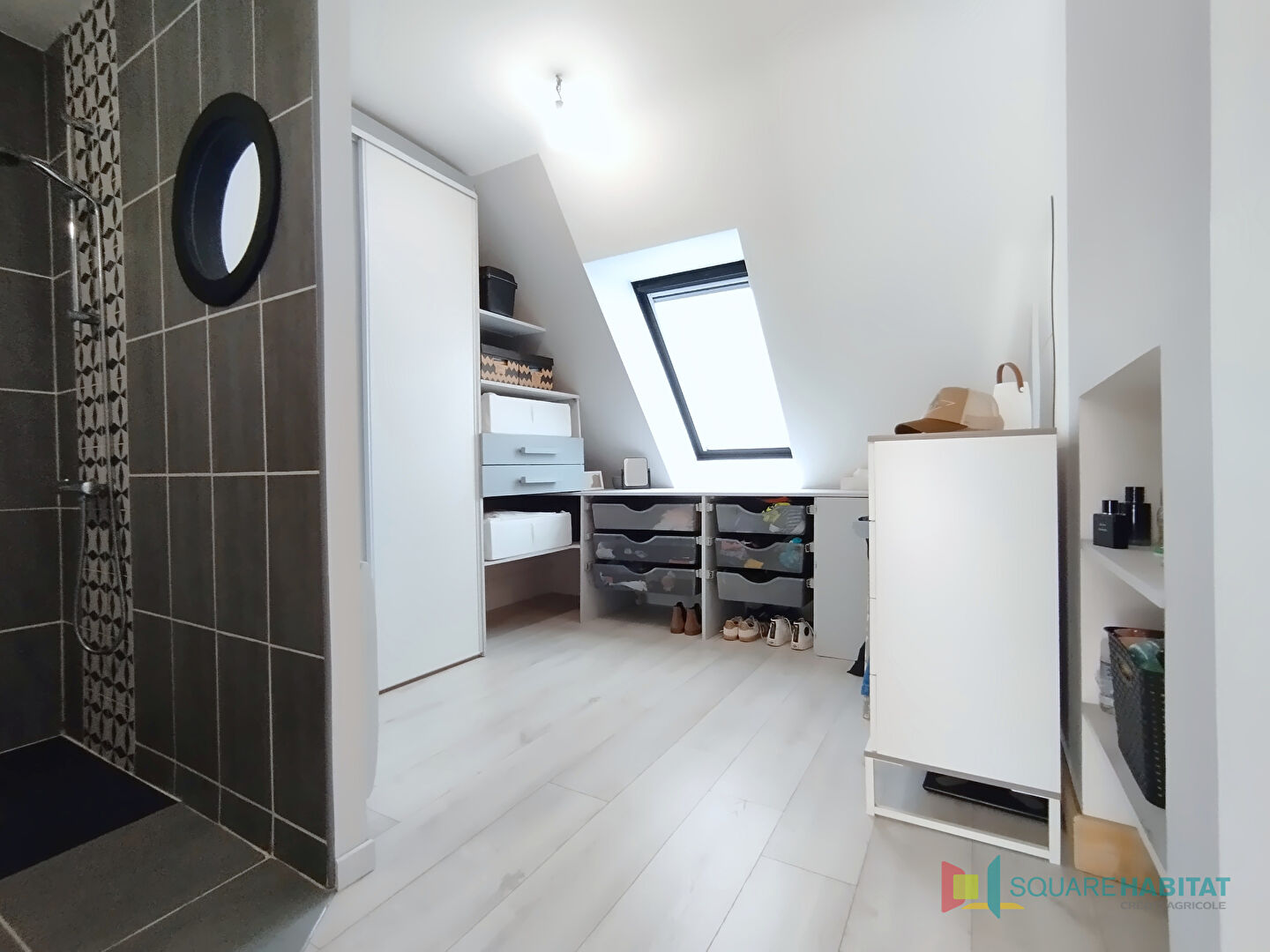 À l'étage, le pallier dessert deux chambres confortables, un WC, une salle de bain et une seconde suite parentale avec chambre et dressing de plus de 8 m².