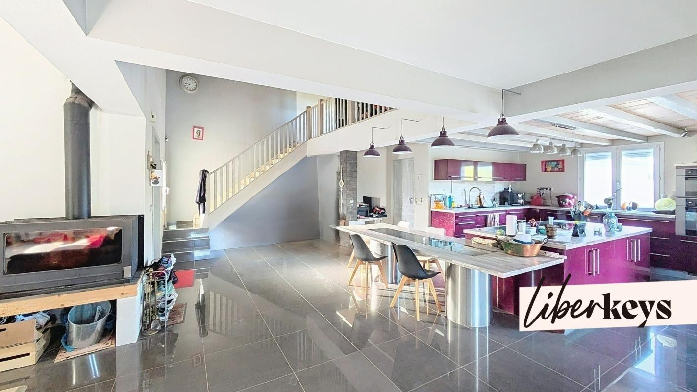 o Une vaste pièce à vivre de 100 m², lumineuse, comprenant salon, séjour et cuisine aménagée équipée (cellier attenant), donnant sur une grande terrasse avec piscine.