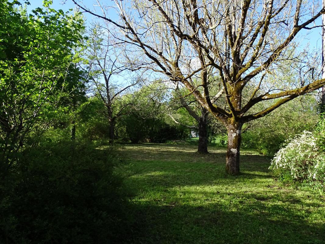 La maison est implantée sur un terrain clos et arboré de 1600m2, avec une grange en pierre de 65m2 sur deux niveaux.