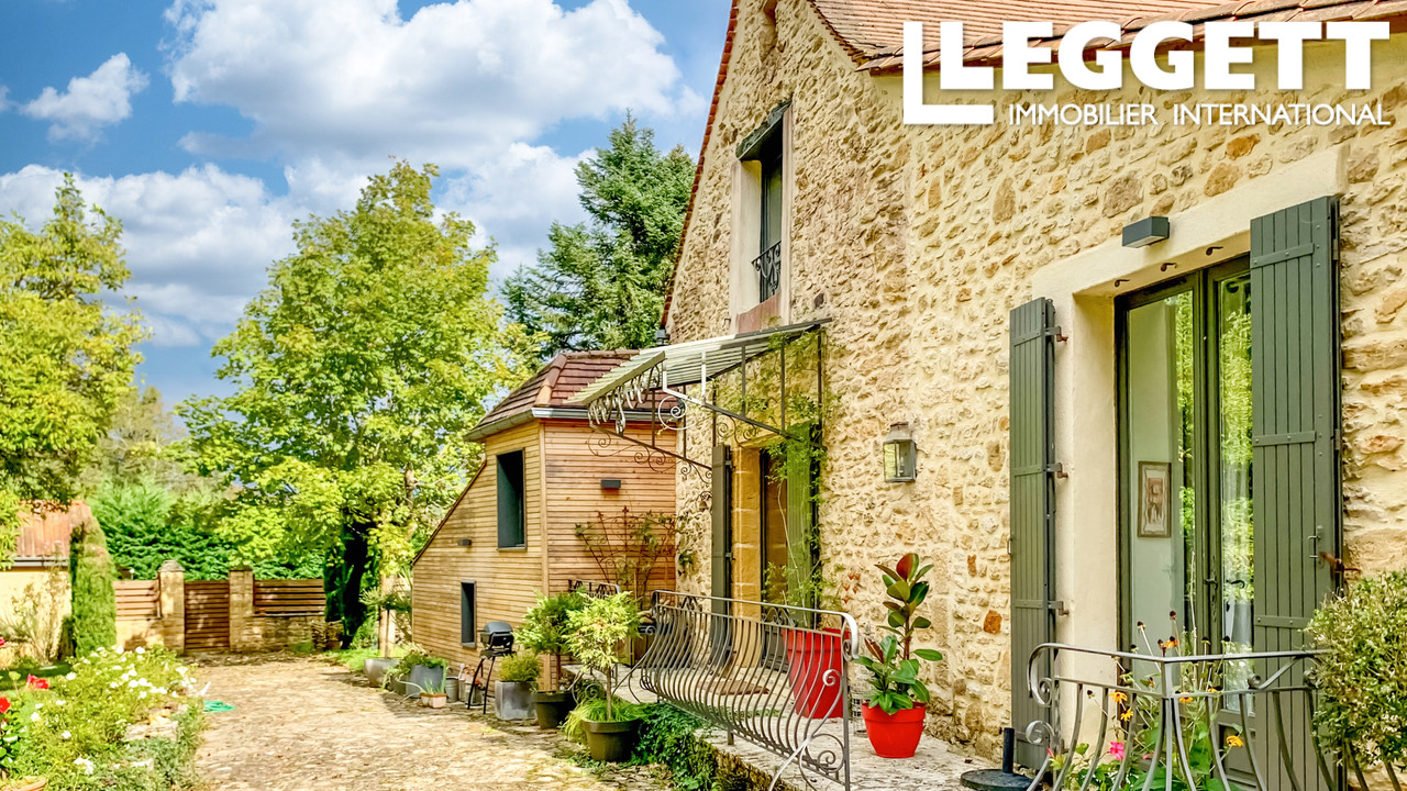 A39800TP24 - Située dans un environnement privilégié, cette charmante maison en pierre typique du Périgord vous séduira par son cachet, son cadre naturel exceptionnel et son vaste terrain plat - une rareté dans la région.