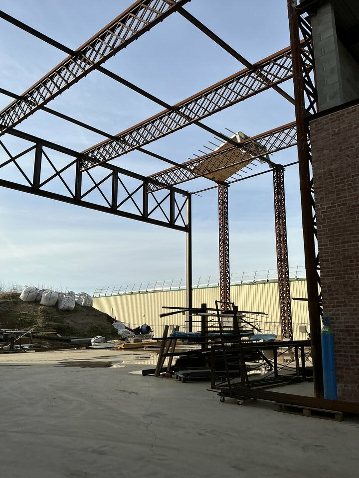 BATIMENT structure Eiffel/moellon revêtement à la chaux, 1 051 m² sur deux étages, deux portes sectionnelles, monte charge accompagner, grand vitrage, préau commun, entrée/sortie du tènement.Possibilité de clés en main.Place de parking, terrain clos,